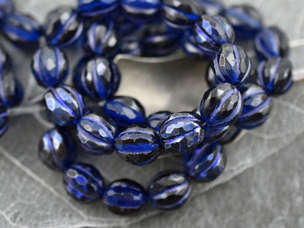 *12* 10mm Purple Luster Washed Pacific Blue Faceted Round Melon Beads
