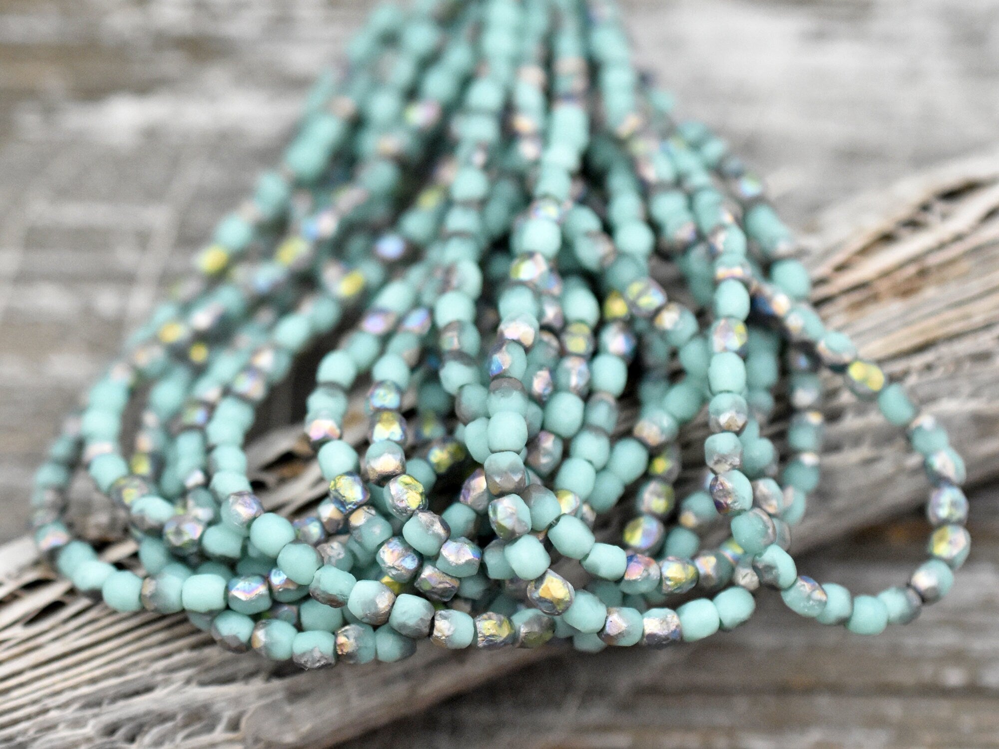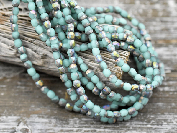 *50* 3mm Silver Rainow Washed Etched Matte Aqua Opal Fire Polished Round Beads