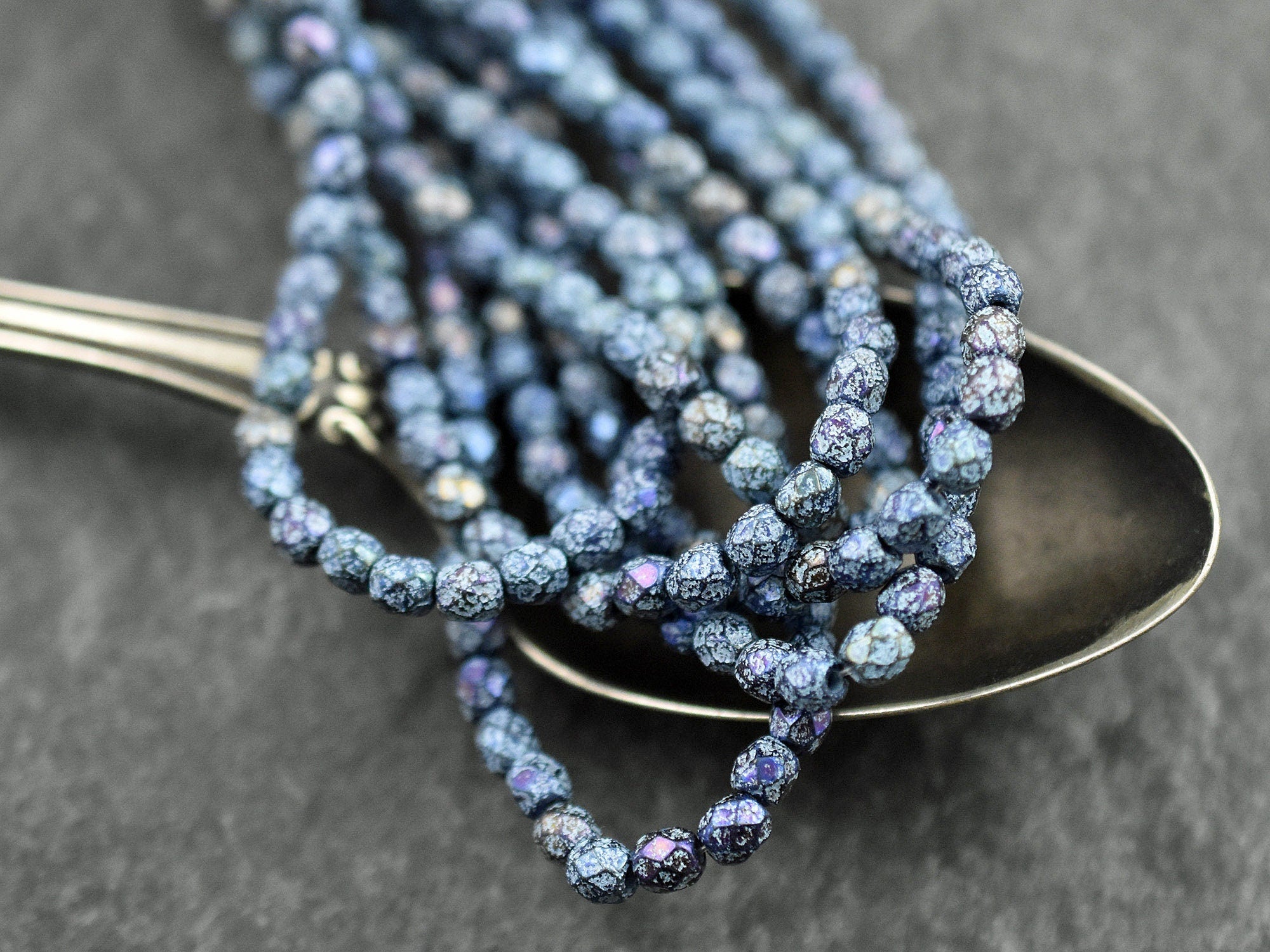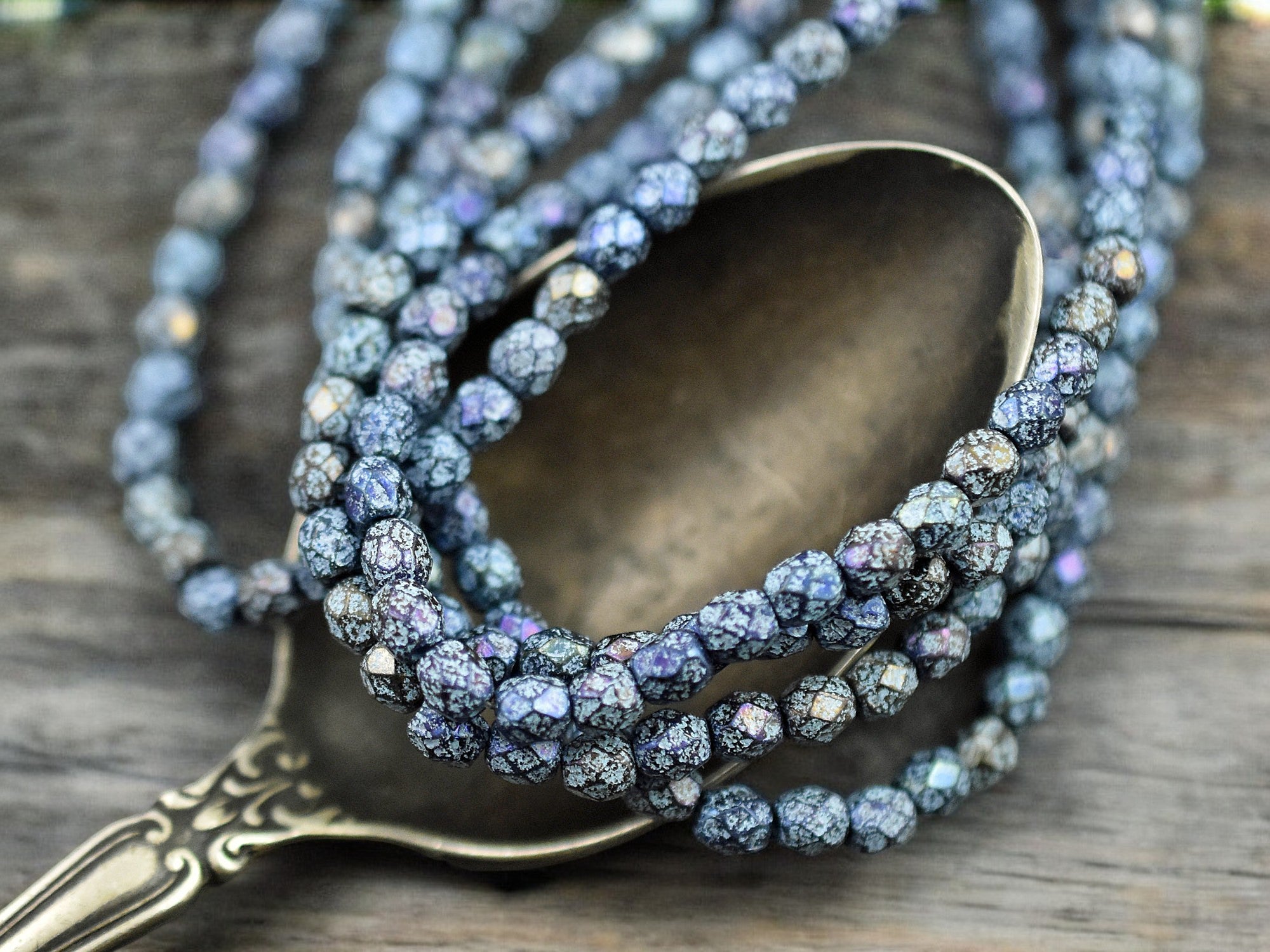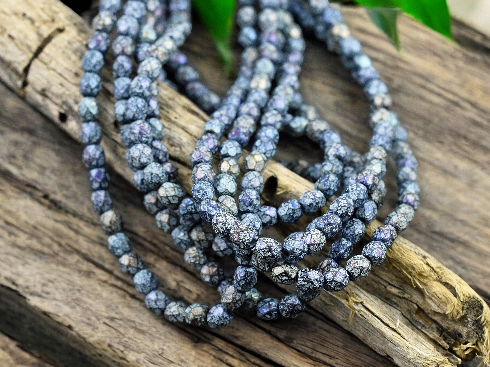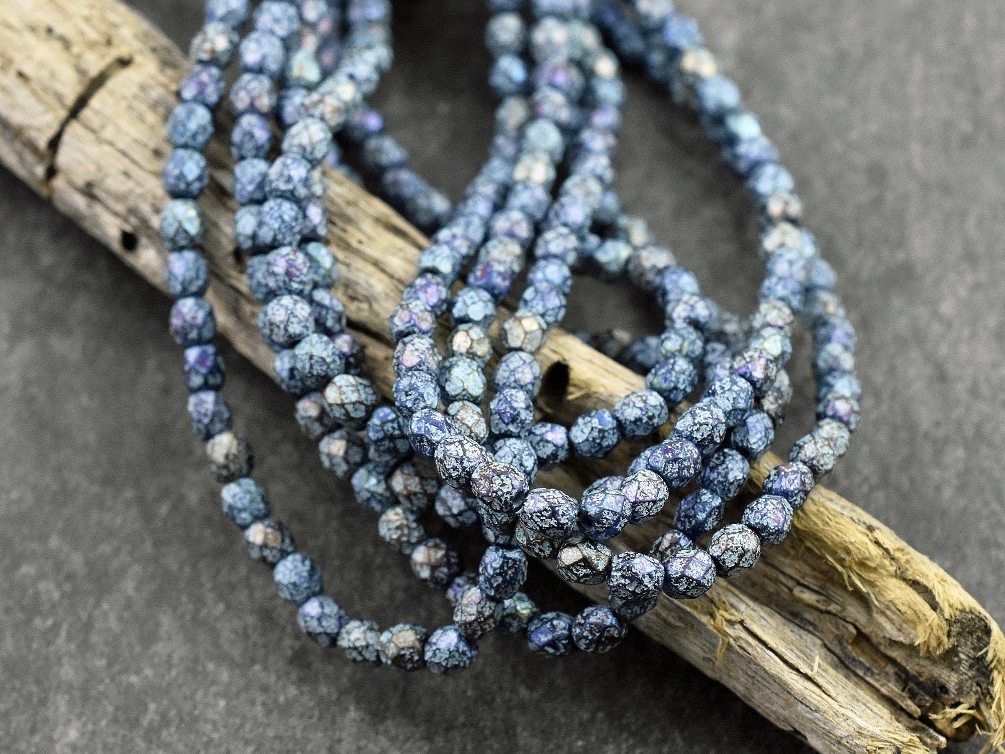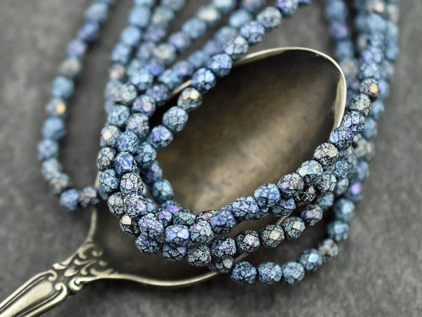 *50* 4mm Turquoise Washed Etched Blue Iris Fire Polished Round Beads