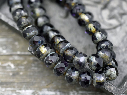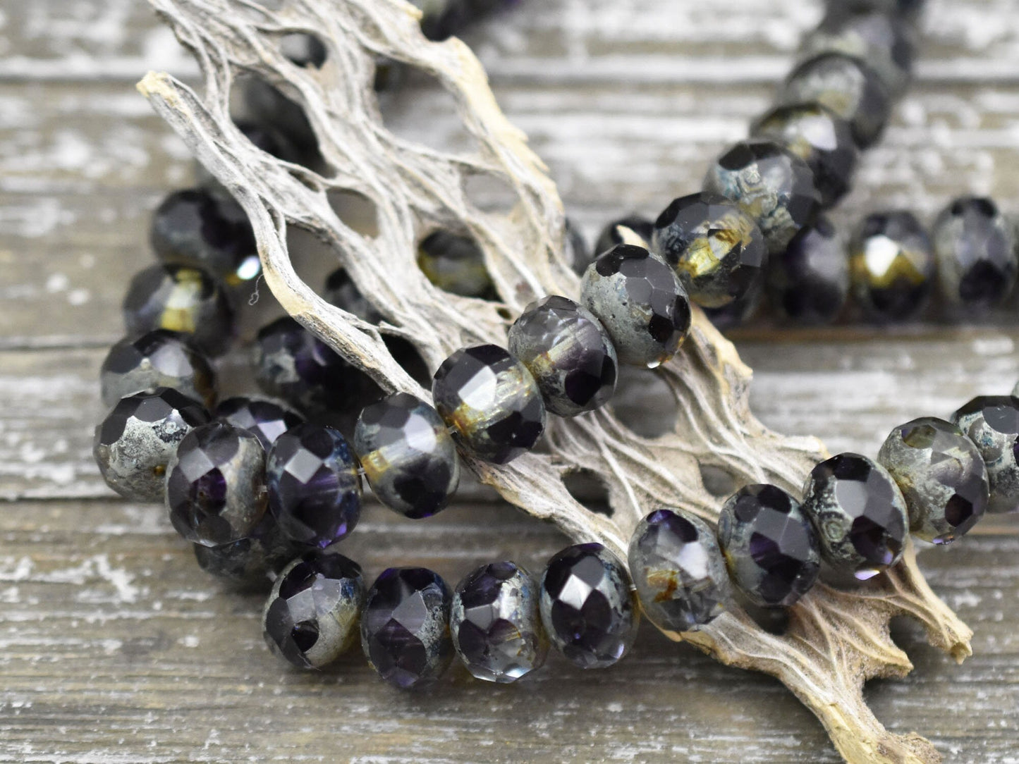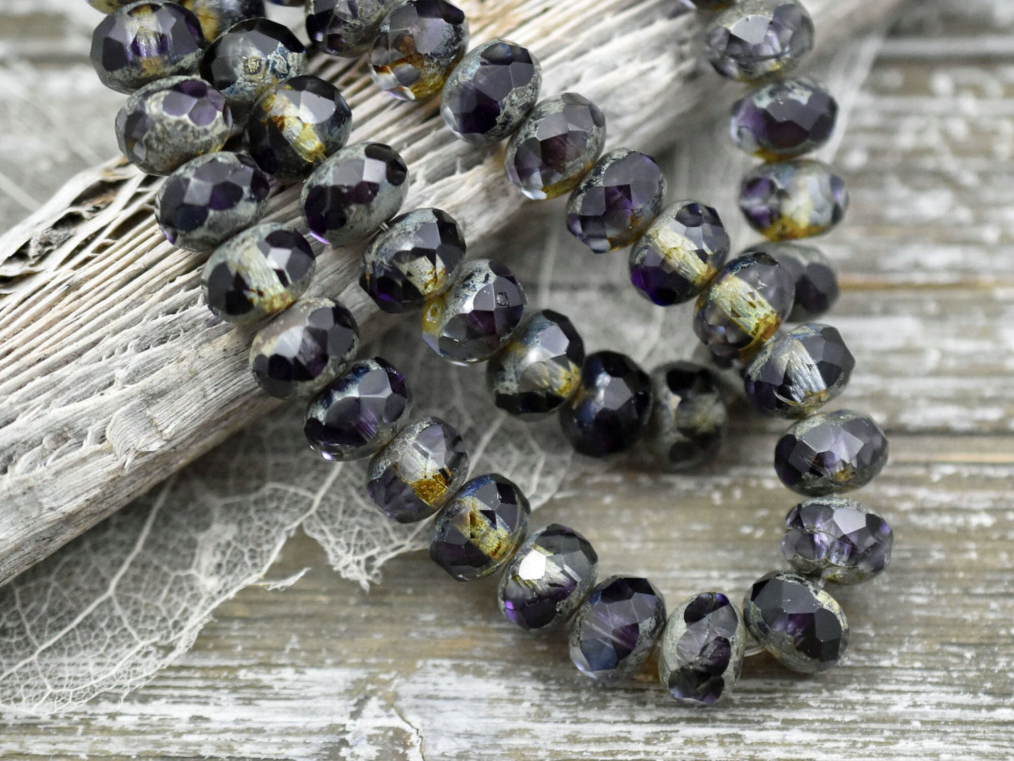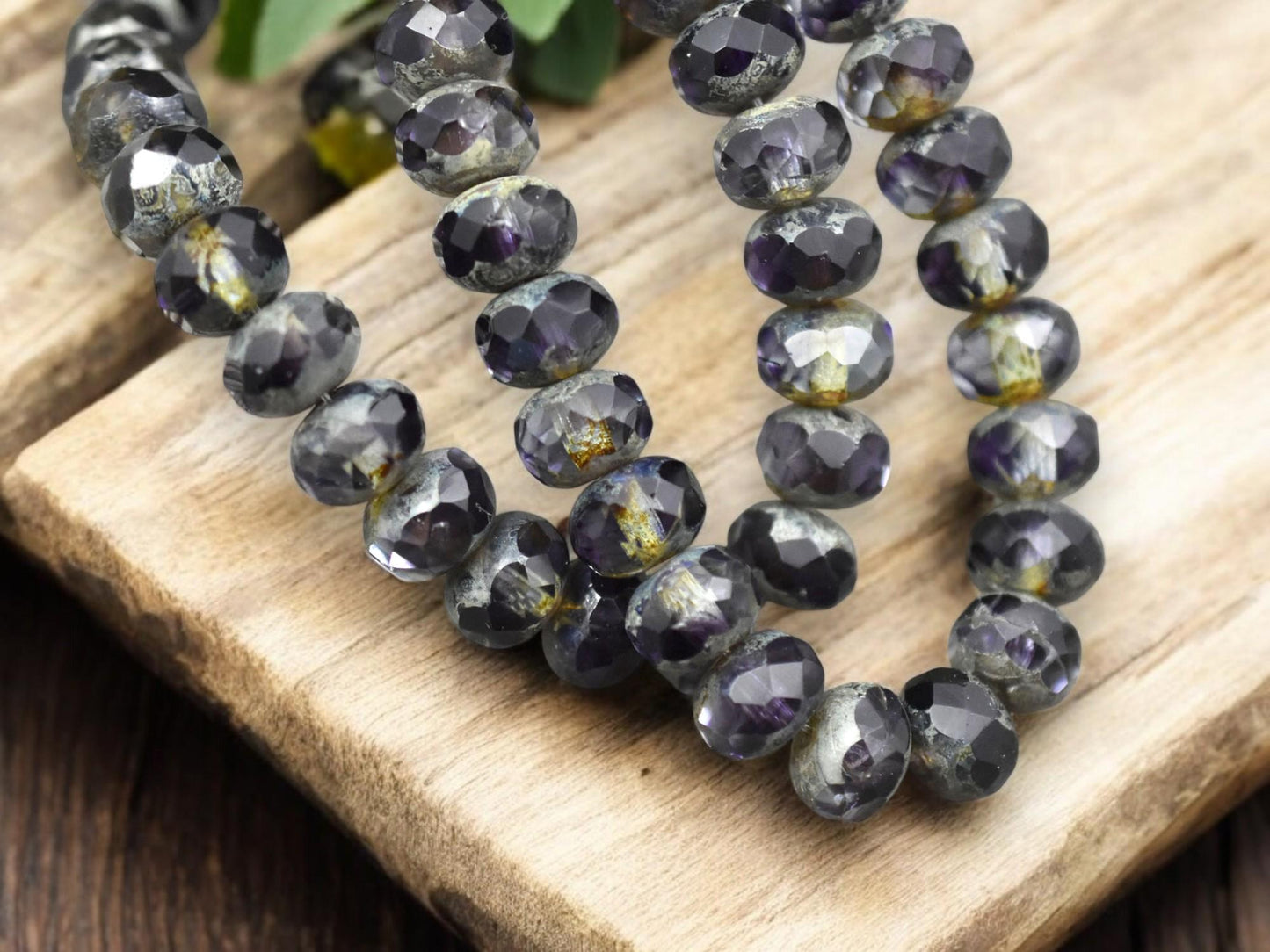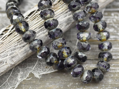 Amethyst Picasso Fire Polished Rondelle Beads - 3x5mm, 5x7mm or 6x8mm