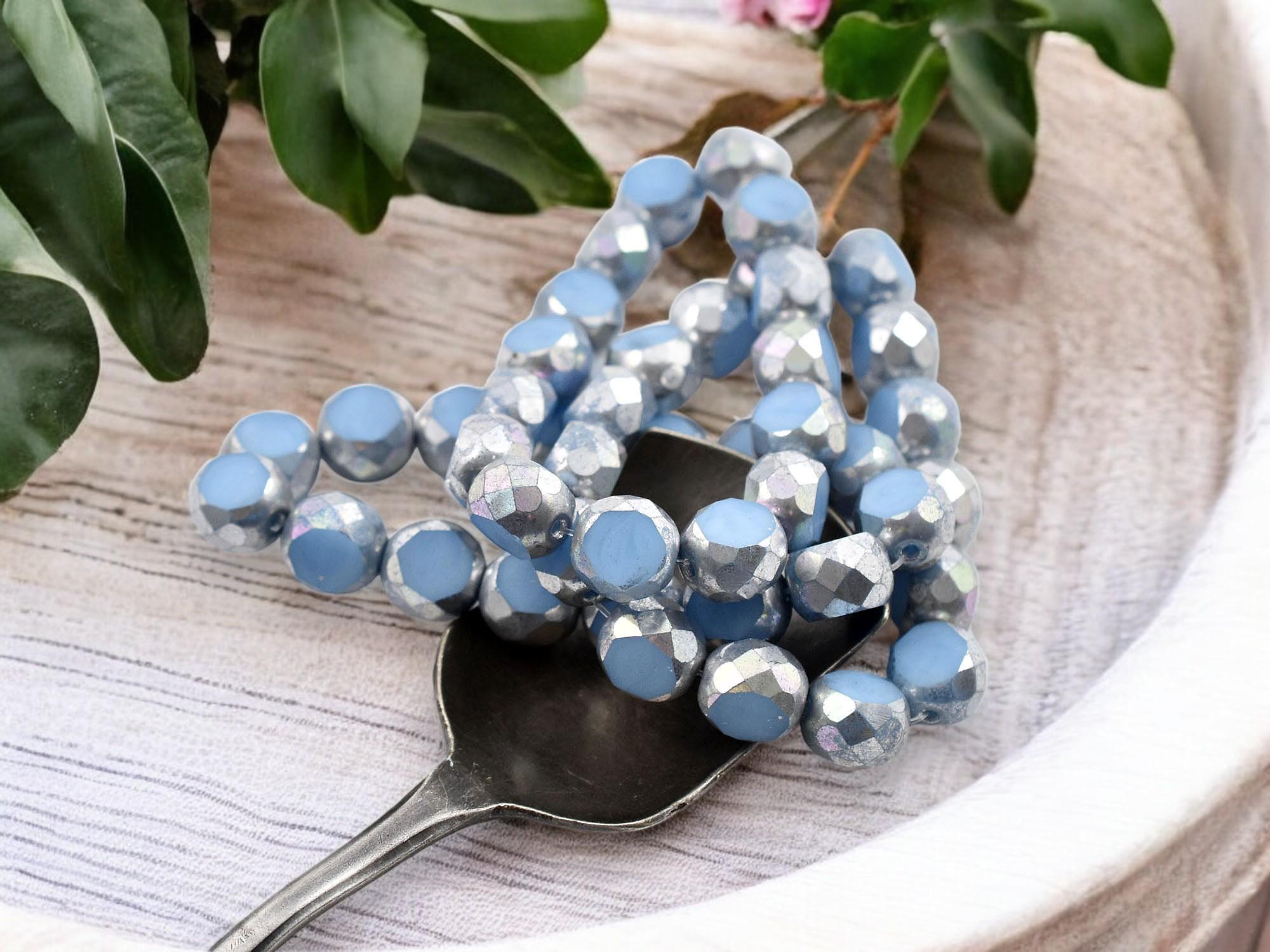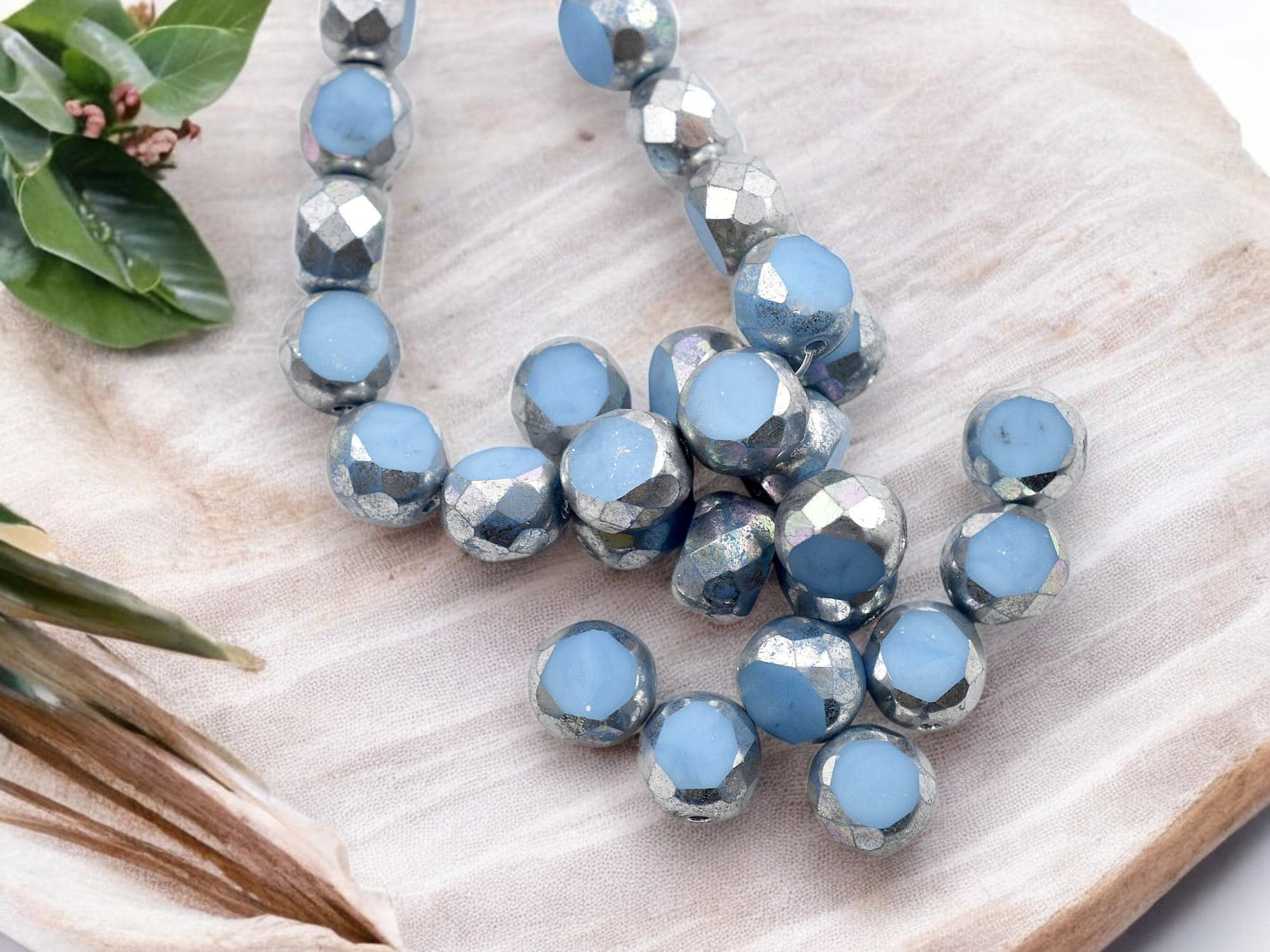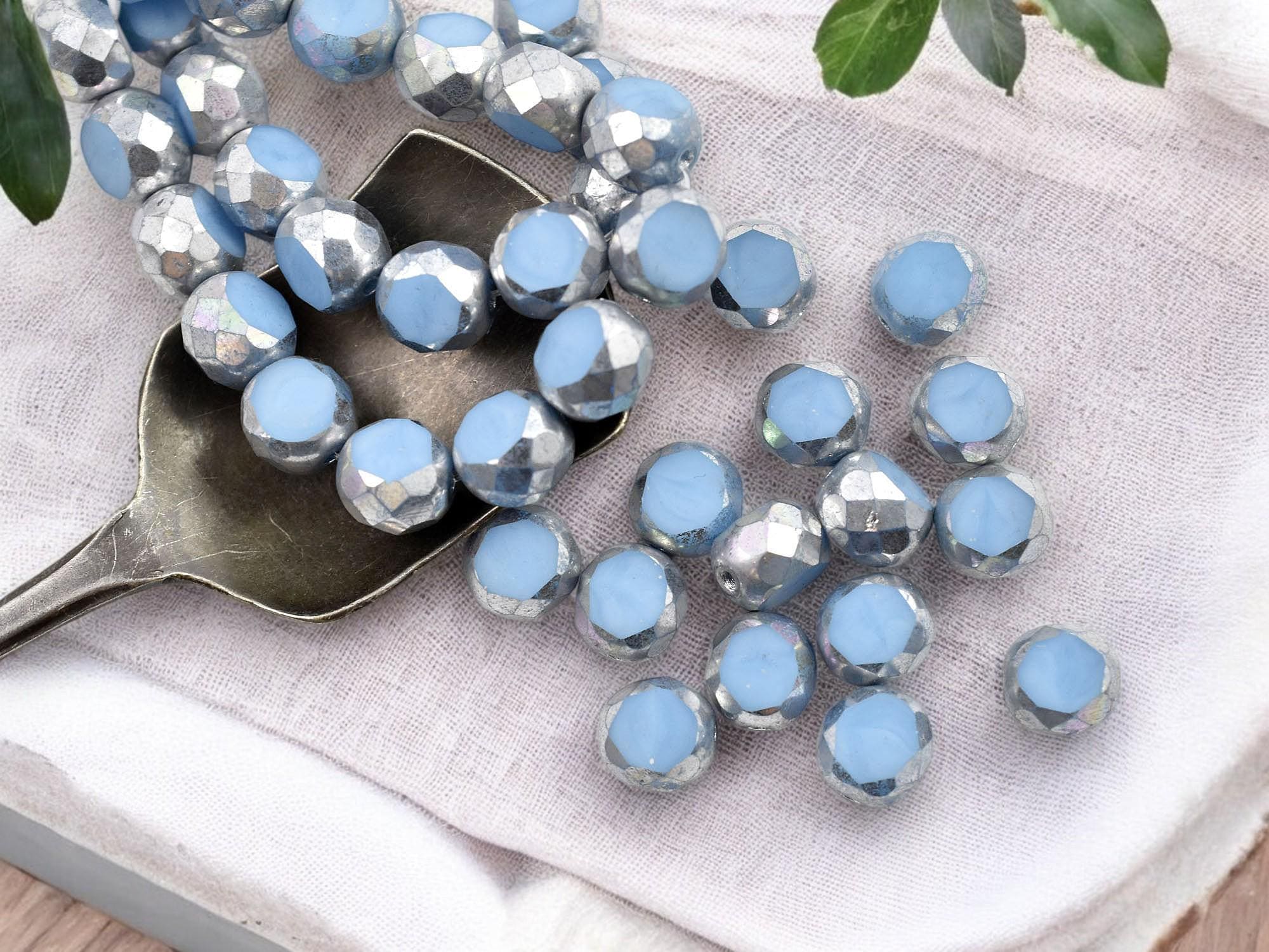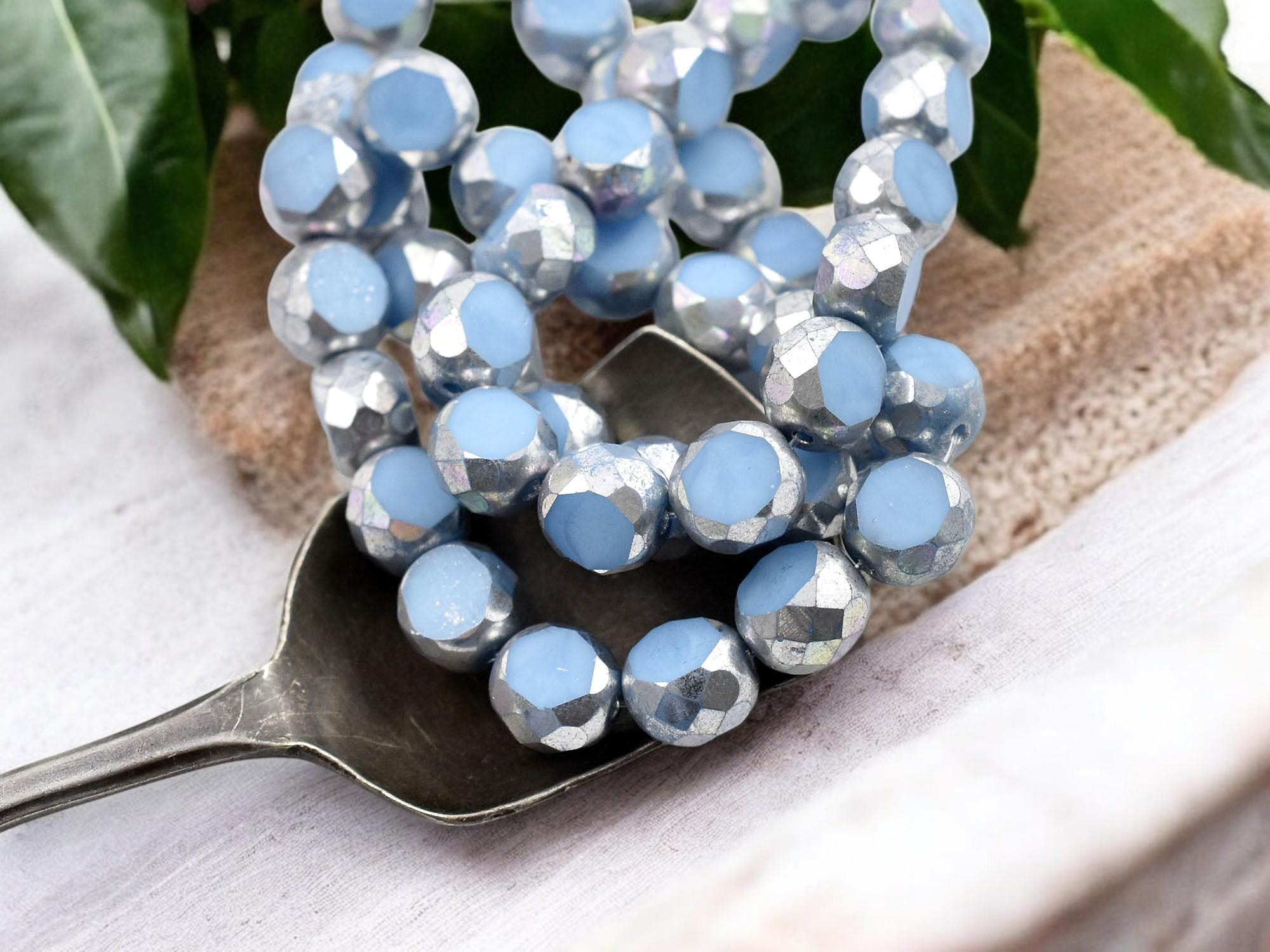 *15* 8mm Silver AB Washed Sky Blue 2 Cut Fire Polished Round Beads