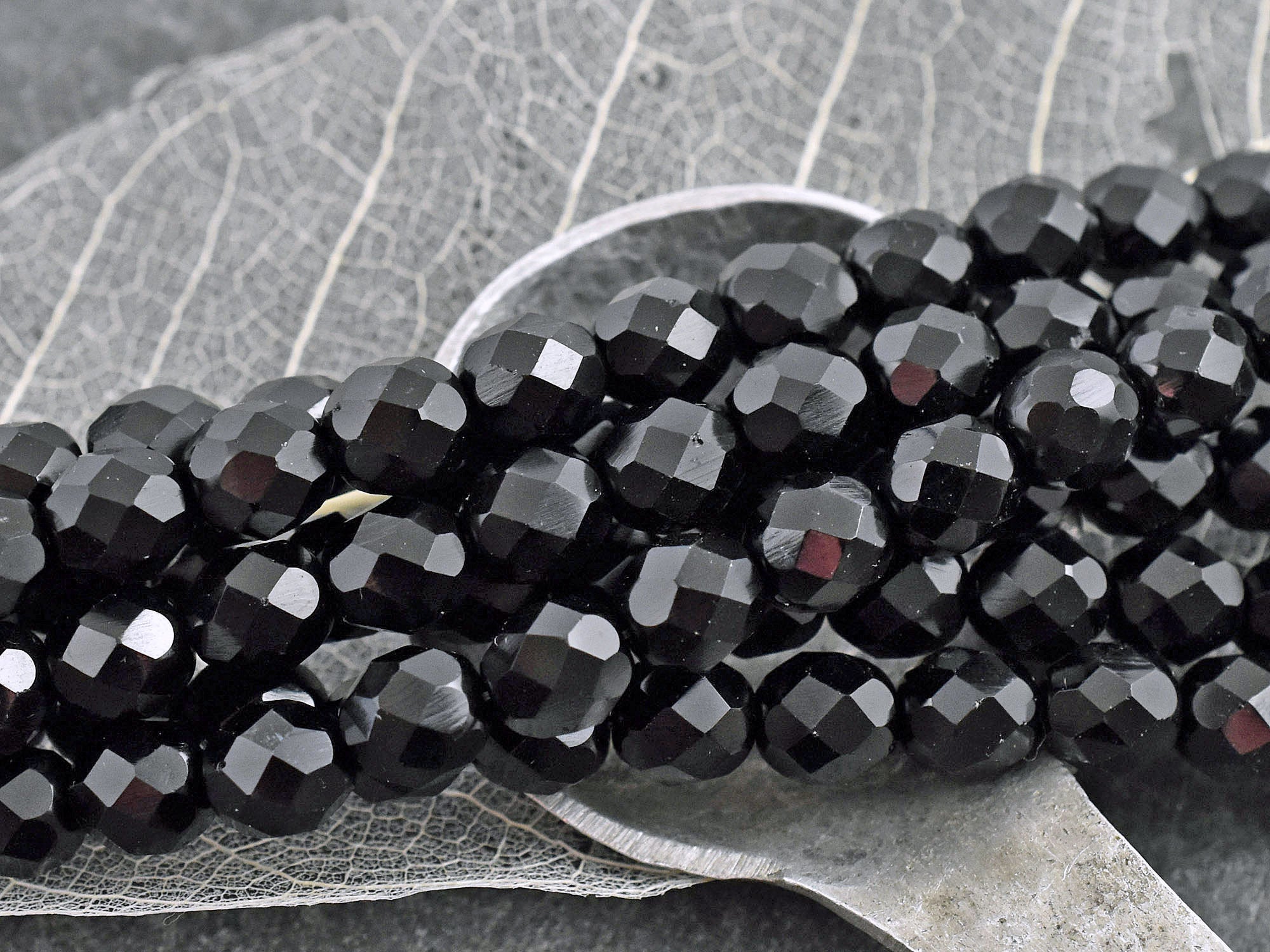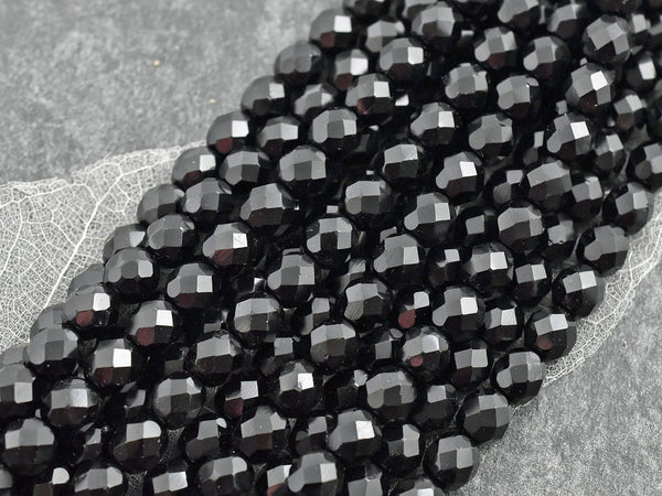 *16* 8mm Opaque Jet Black Fire Polished Round Beads