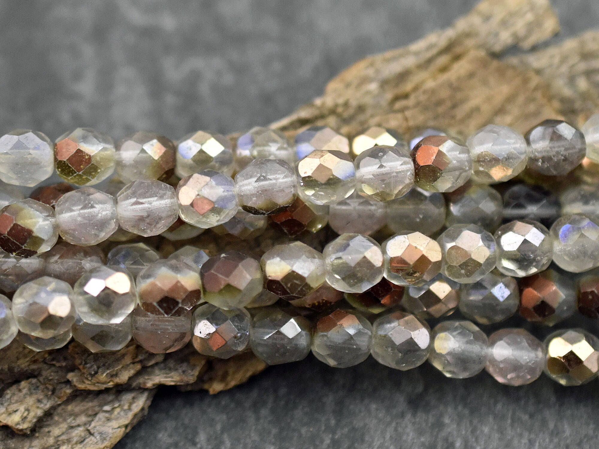 *16* 8mm Aged Crystal Copper Fire Polished Round Beads