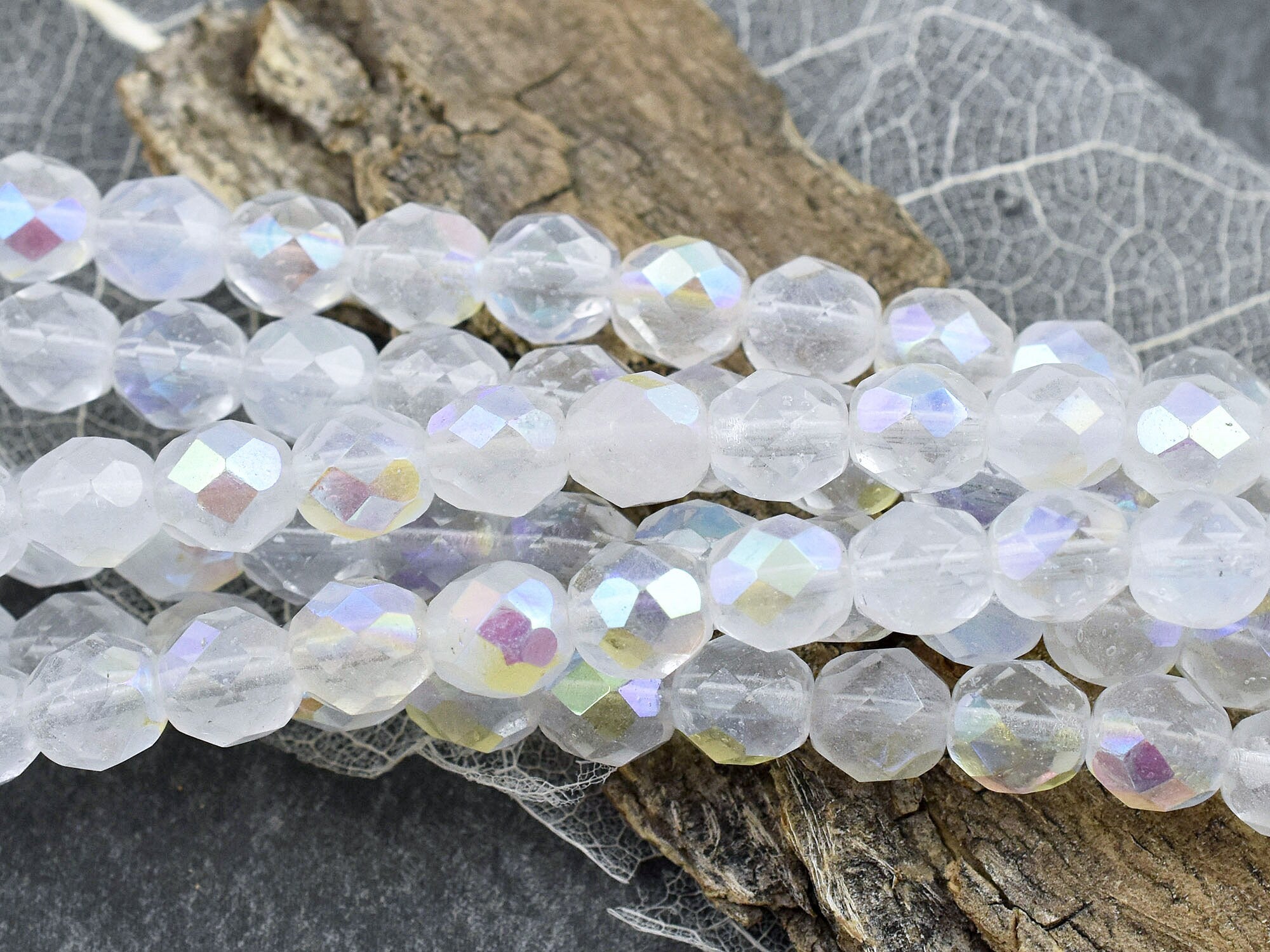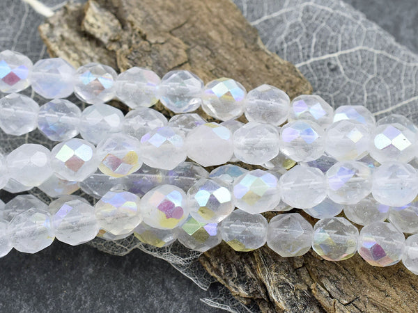*16* 8mm Crystal Opaline AB Fire Polished Round Beads