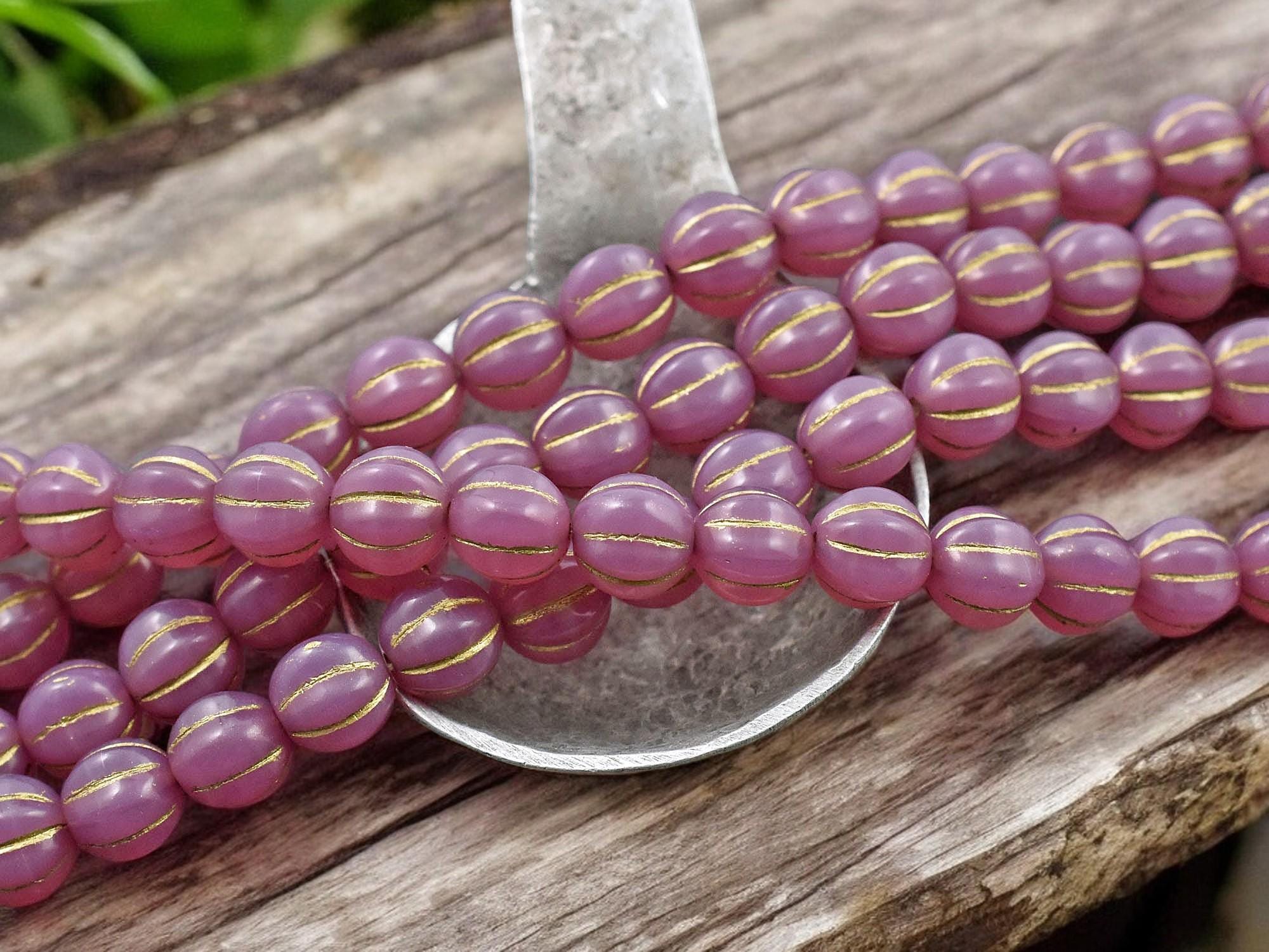 *16* 8mm Gold Washed Pink Opaline Round Melon Beads
