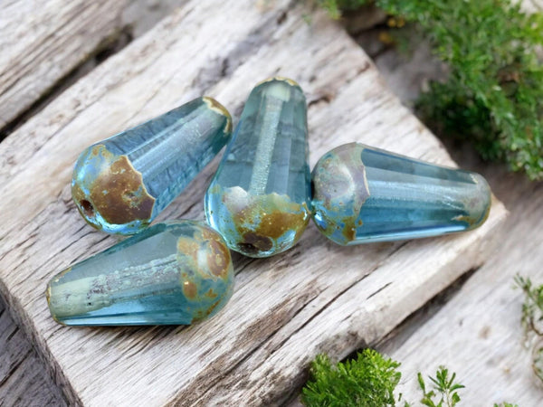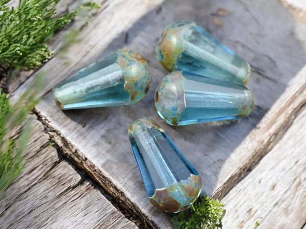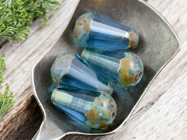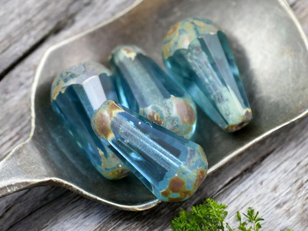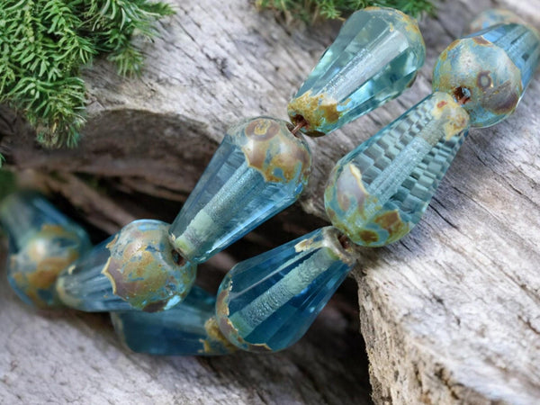 *8* 8x15mm Aquamarine Picasso Faceted Drop Beads