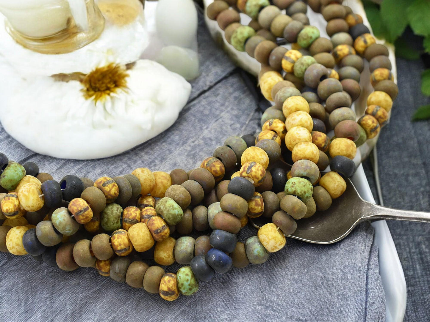 33/0 Aged Matte Caribbean Striped Picasso Seed Bead Mix (9" Strand)