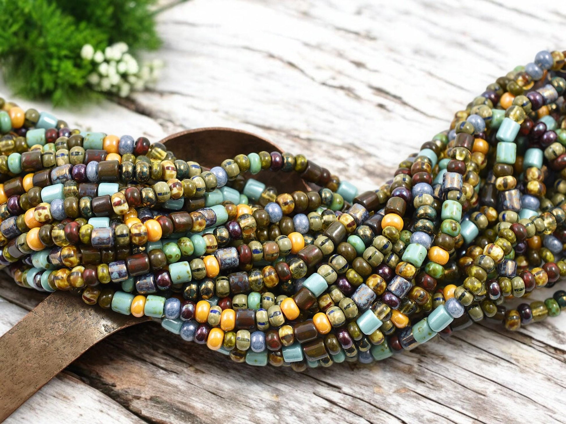 ♥ Color: Aged gala striped picasso tube seed bead mix