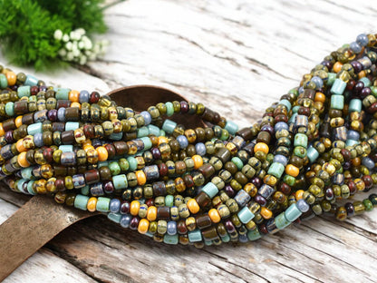 6/0 Aged Gala Striped Picasso Mix Seed Beads (21" Strand)