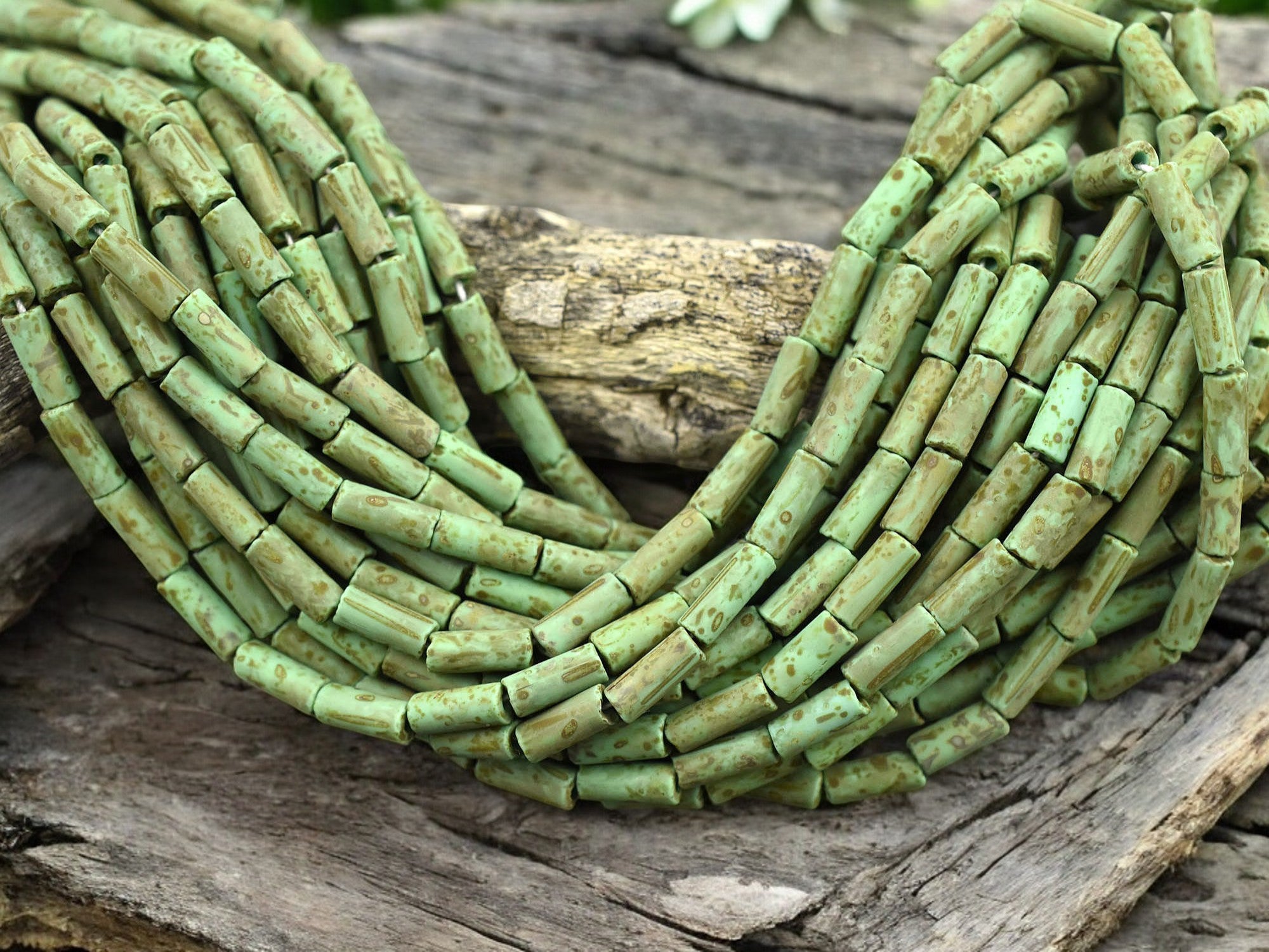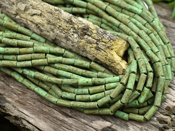 9x4mm Matte Green Turquoise Picasso Czech Bugle Beads - 20" Strand