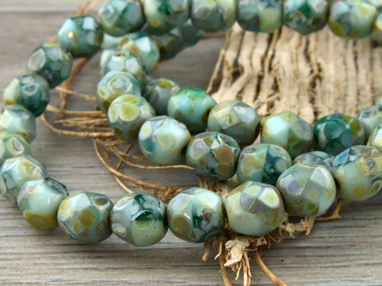 *25* 6mm Rustic Green Picasso Fire Polished Round Beads