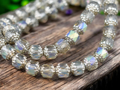 Silver Washed Smoke Apollo AB Fire Polished Cathedral Beads