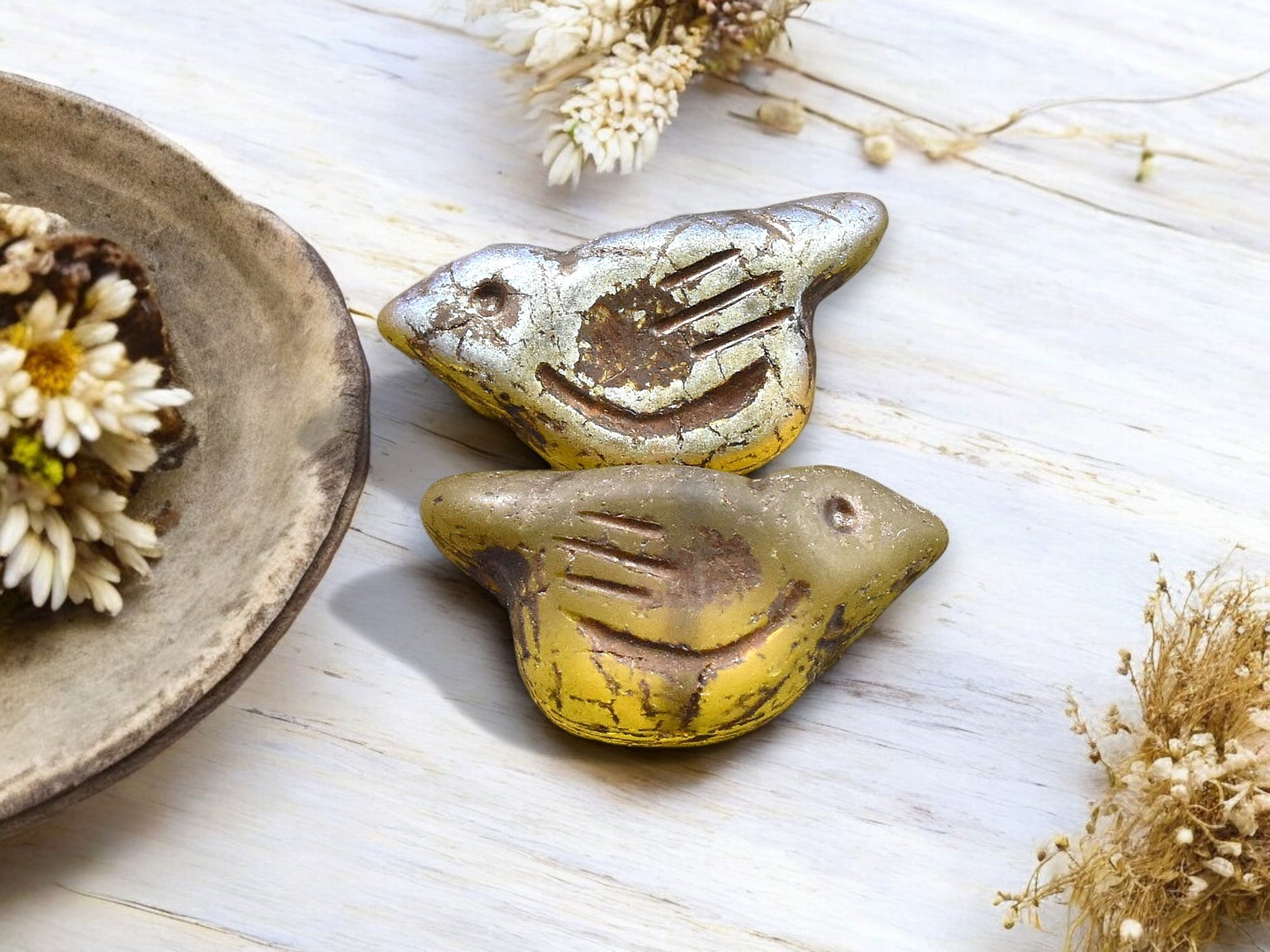 *6* 11x22mm Bronze Washed Yellow Topaz AB Crystal Bird Beads