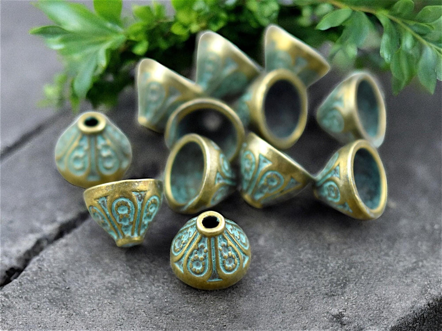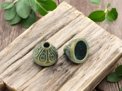 *40* 10x7mm Antique Bronze Green Patina Bead Caps