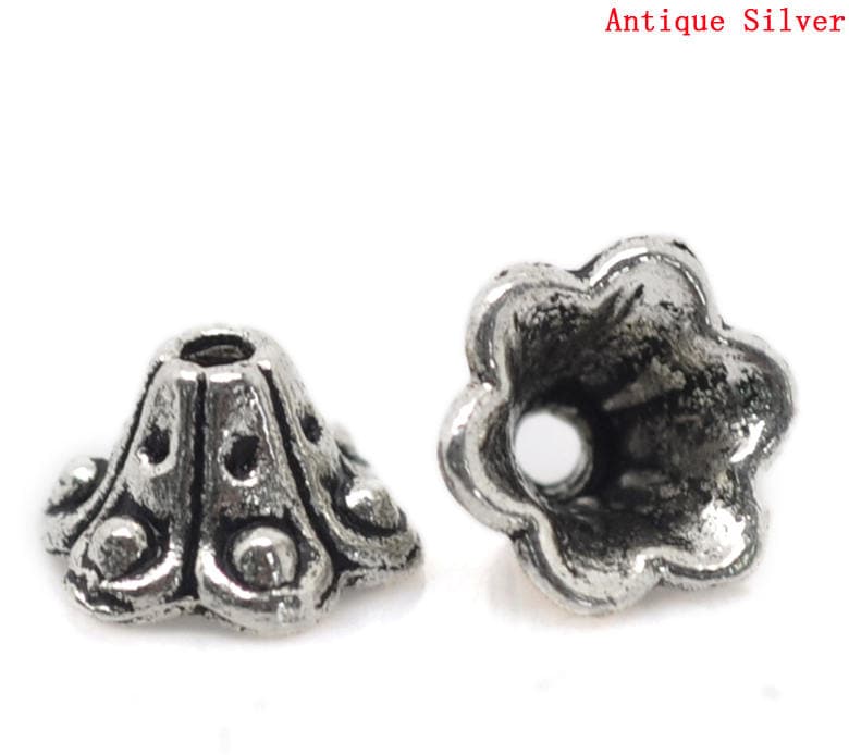 *100* 10x6mm Antique Silver Scalloped Bead Caps