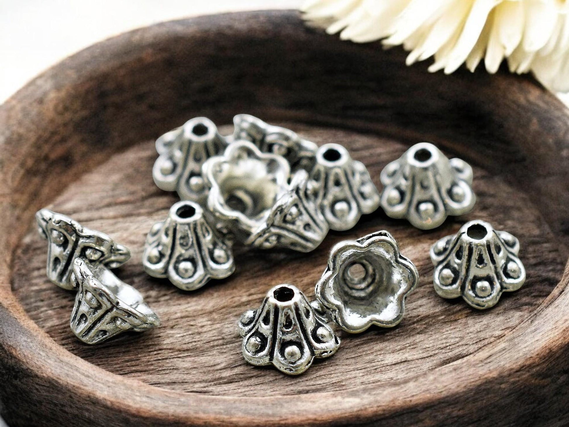 Type/Shape: Metal scalloped edge bead cap