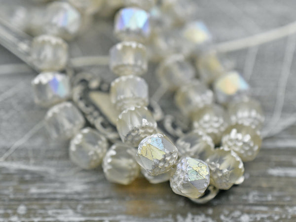 Antique Silver Washed Matte Crystal Ecru AB Fire Polished Cathedral Beads