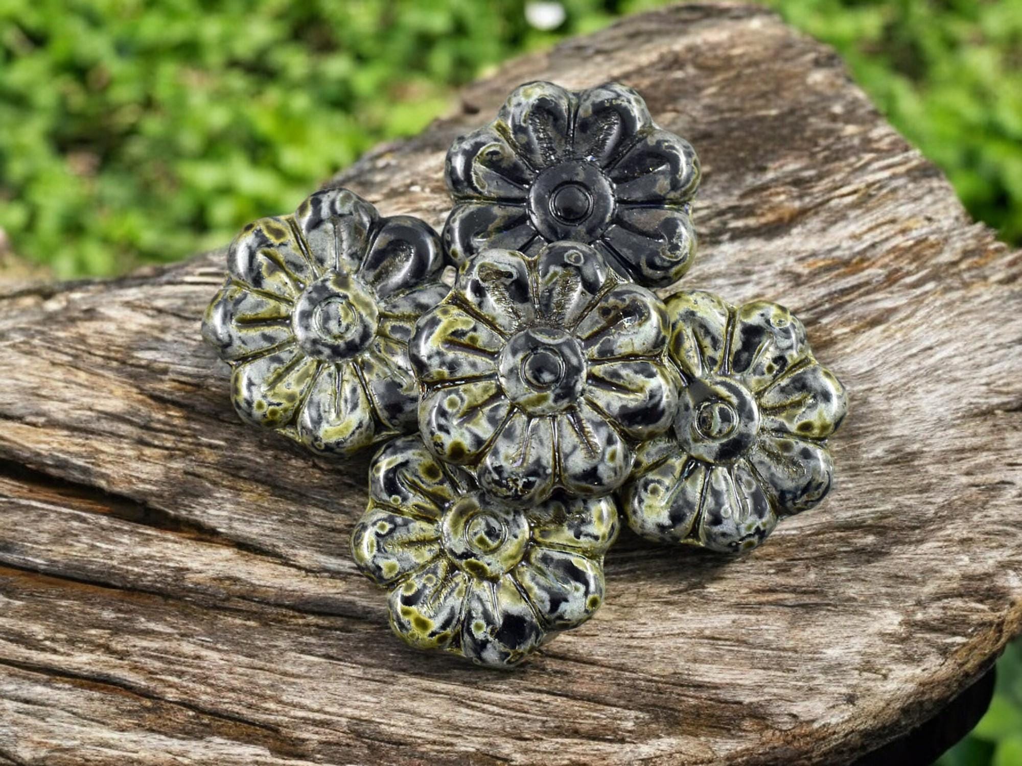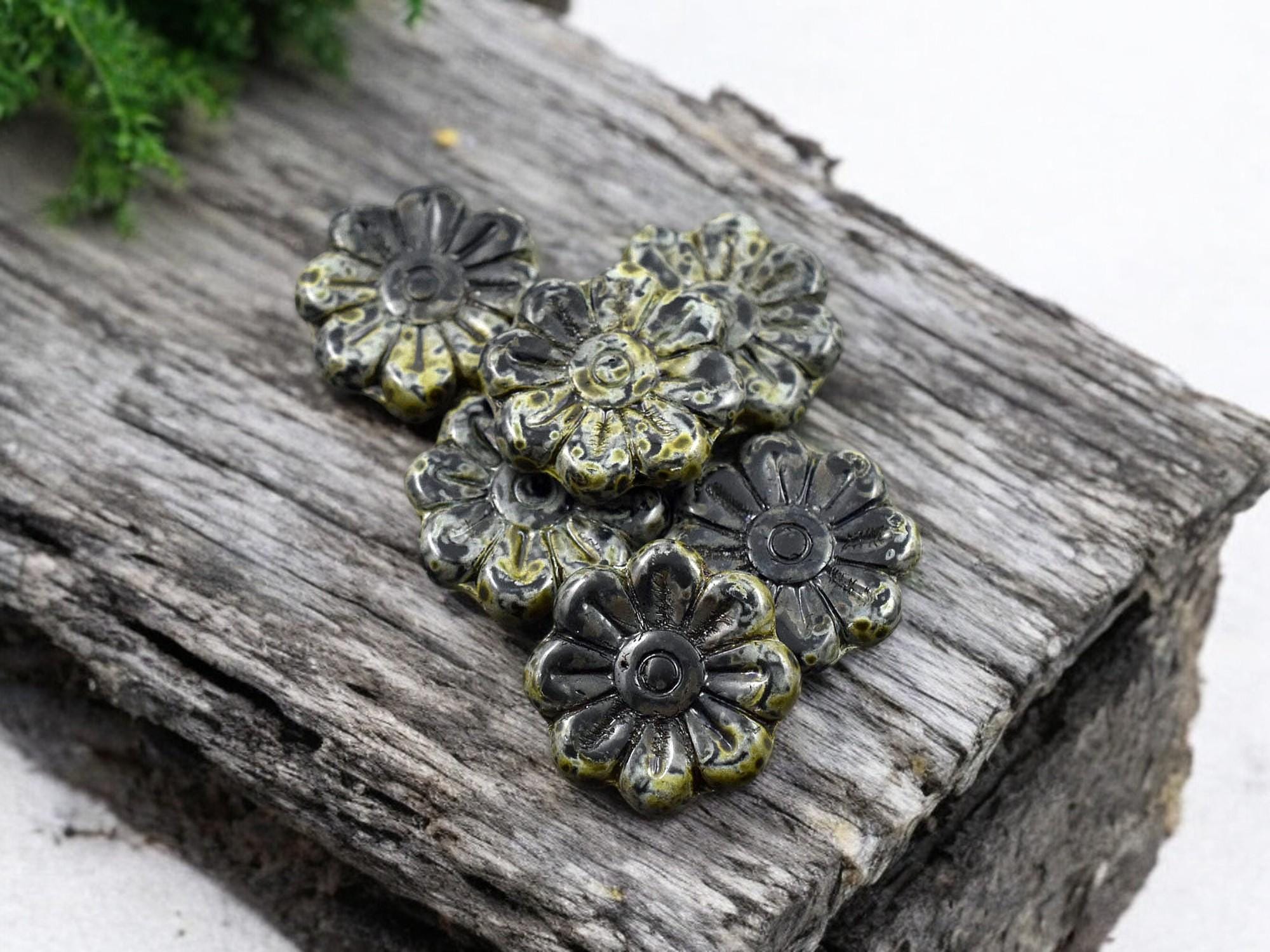 *6* 18mm Opaque Jet Travertine Daisy Flower Beads