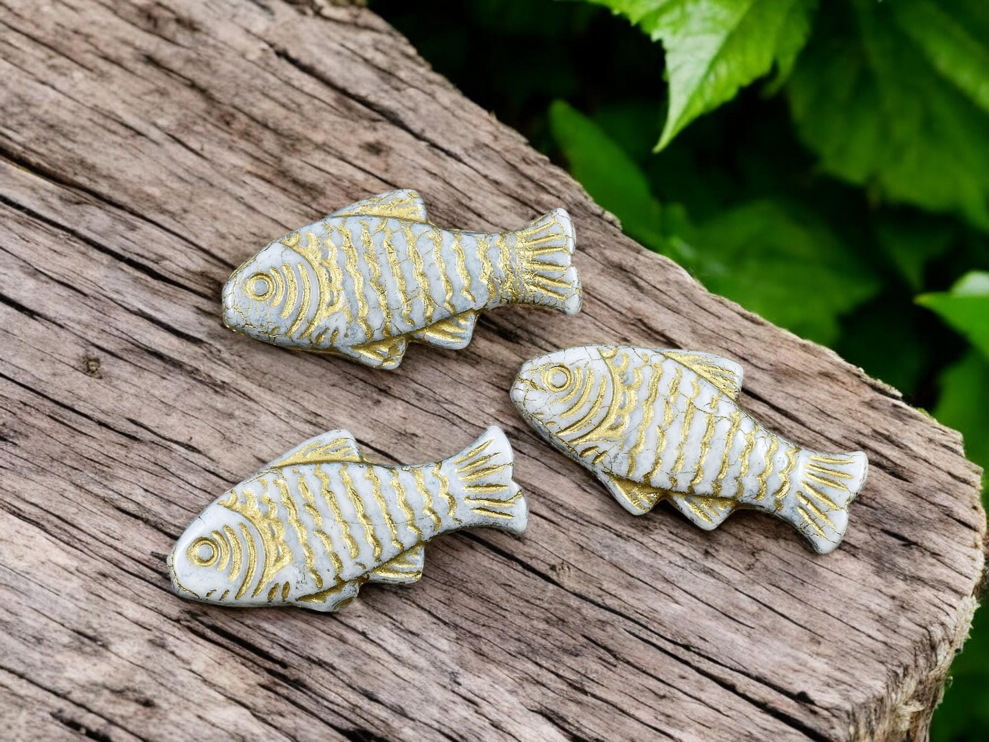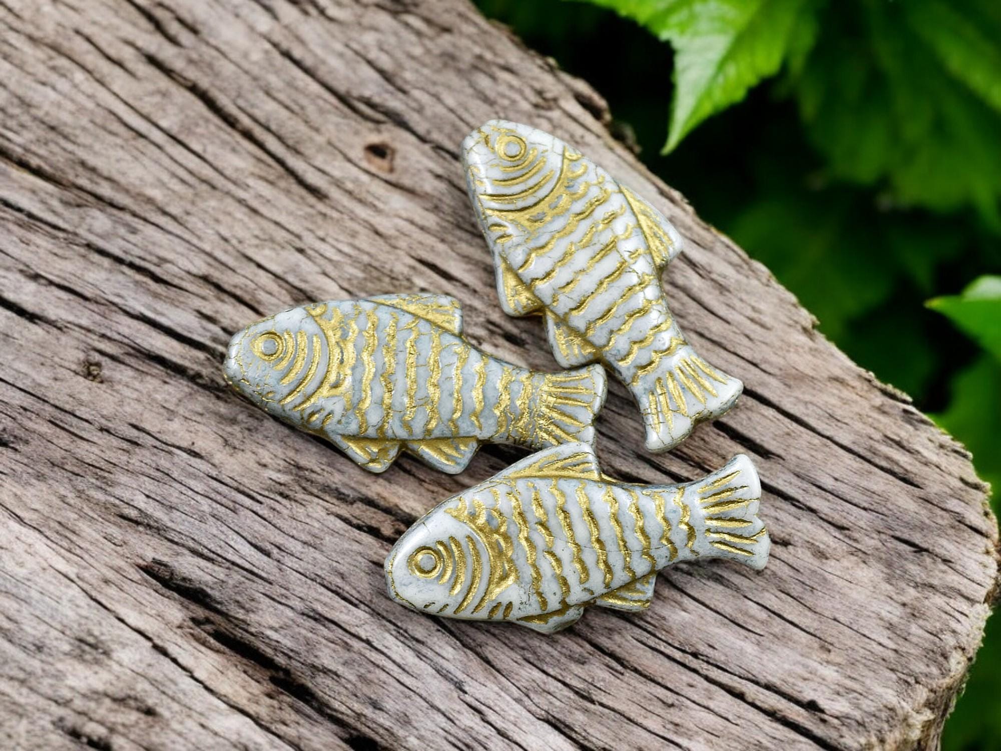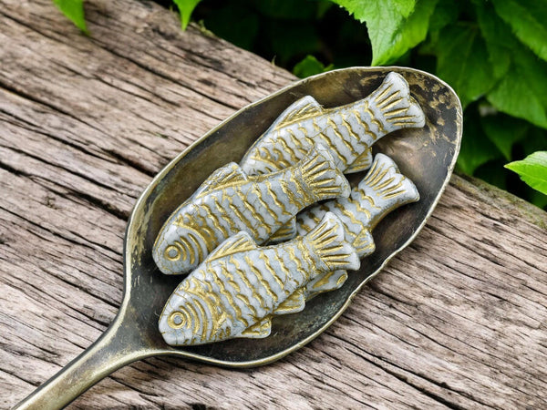 *8* 25x12mm Gold Washed Pale Blue Fish Beads