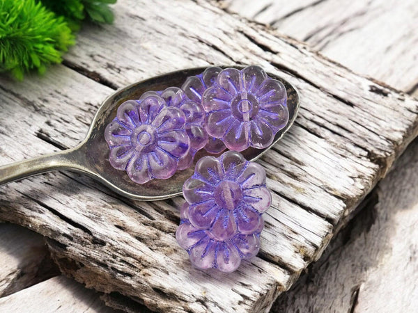 *6* 18mm Purple Washed Crystal Daisy Flower Beads