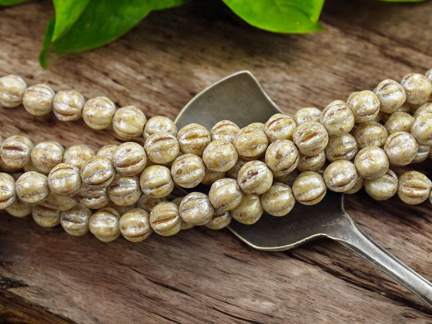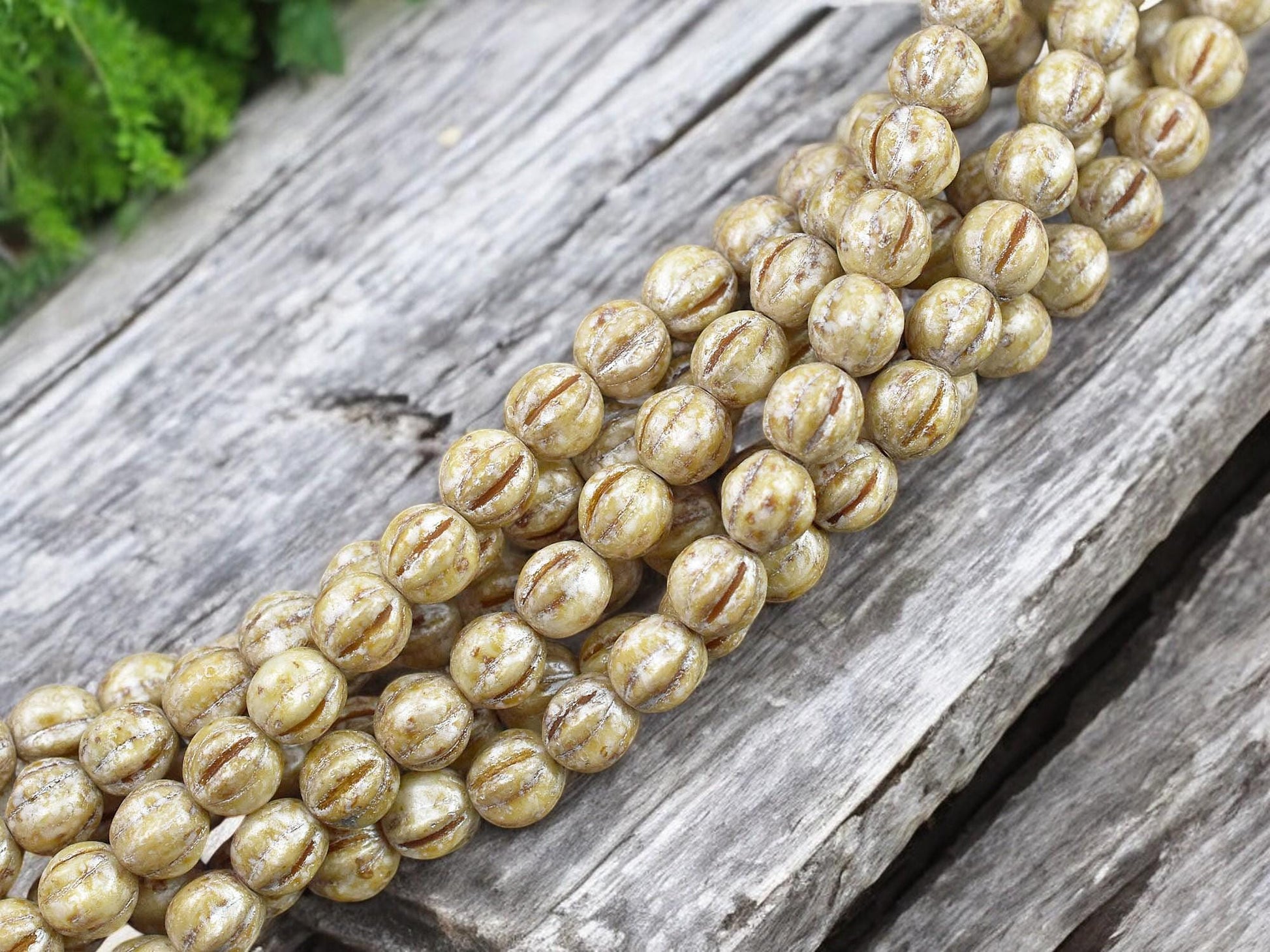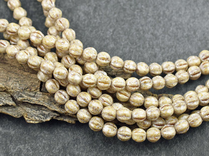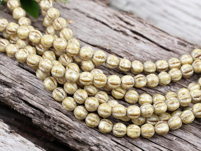 *25* 6mm Opaque Alabaster Champagne Picasso Round Melon Beads