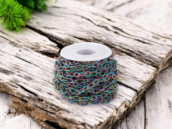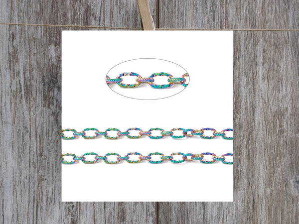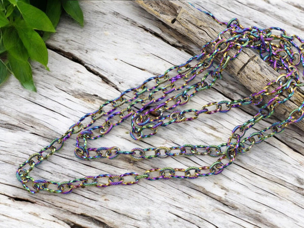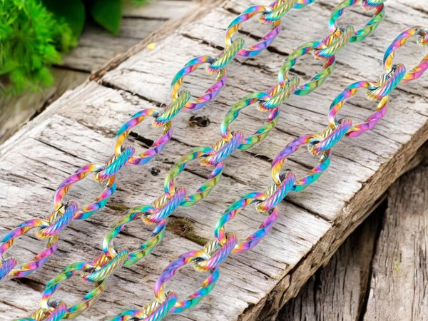 Rainbow Ion Plated 304 Stainless Steel Twisted Oval Chain (Unwelded)