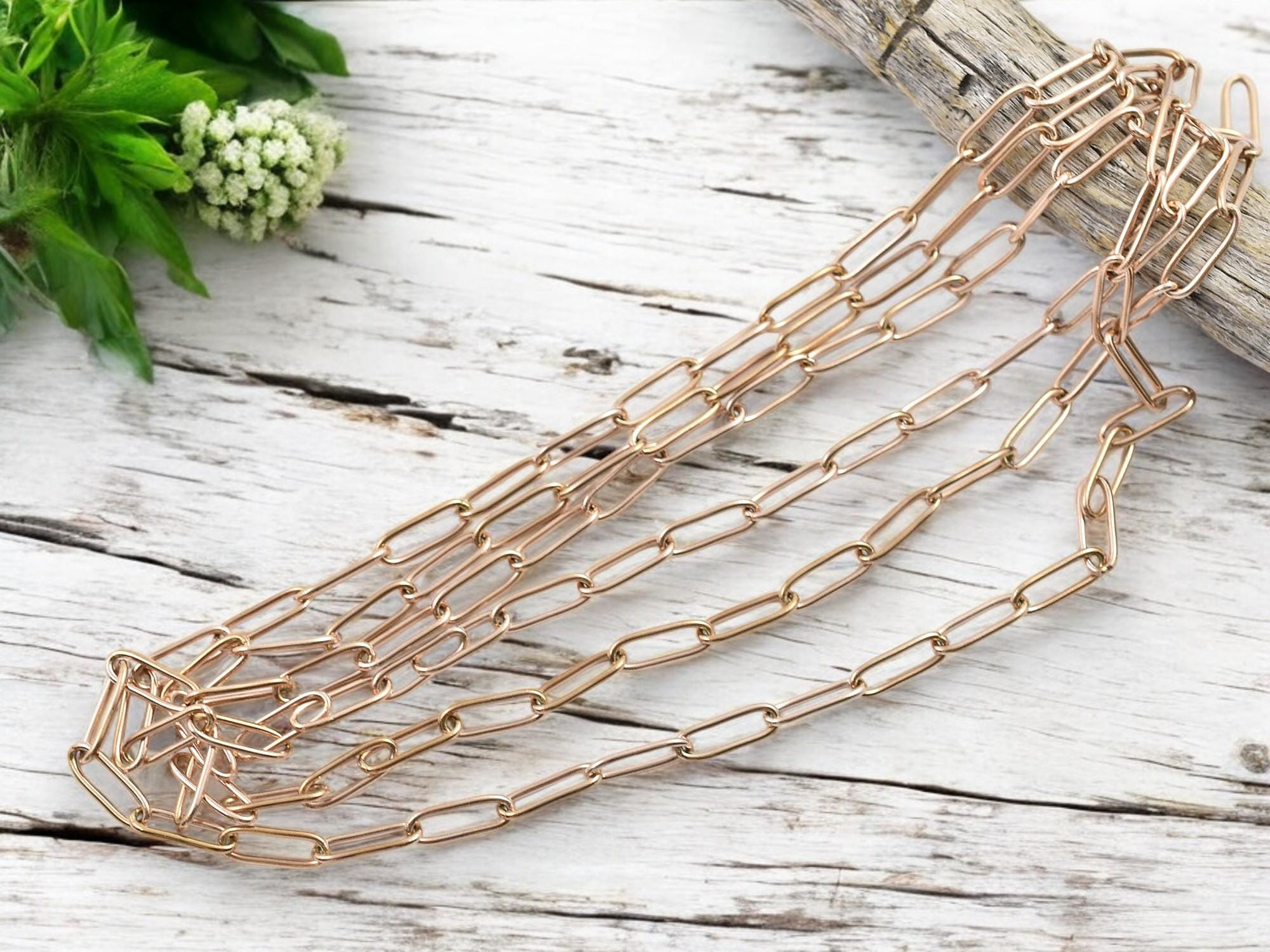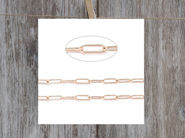 12x4mm Ion Plated Rose Gold 304 Stainless Steel Paperclip Chain (Soldered)