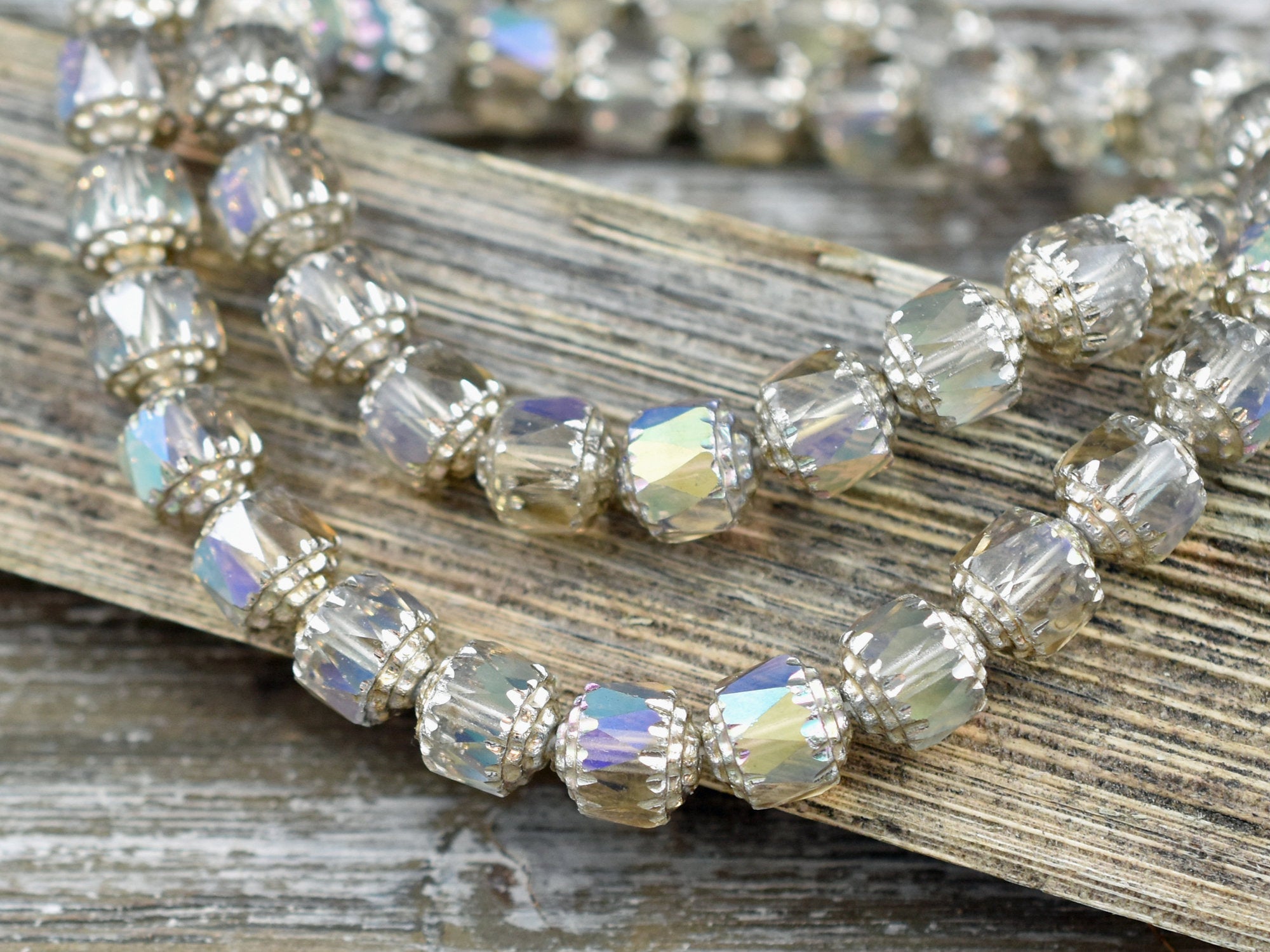 Silver Washed Smoke Apollo AB Fire Polished Cathedral Beads