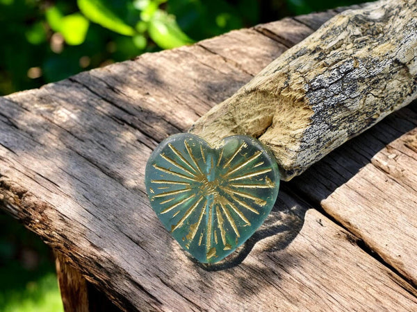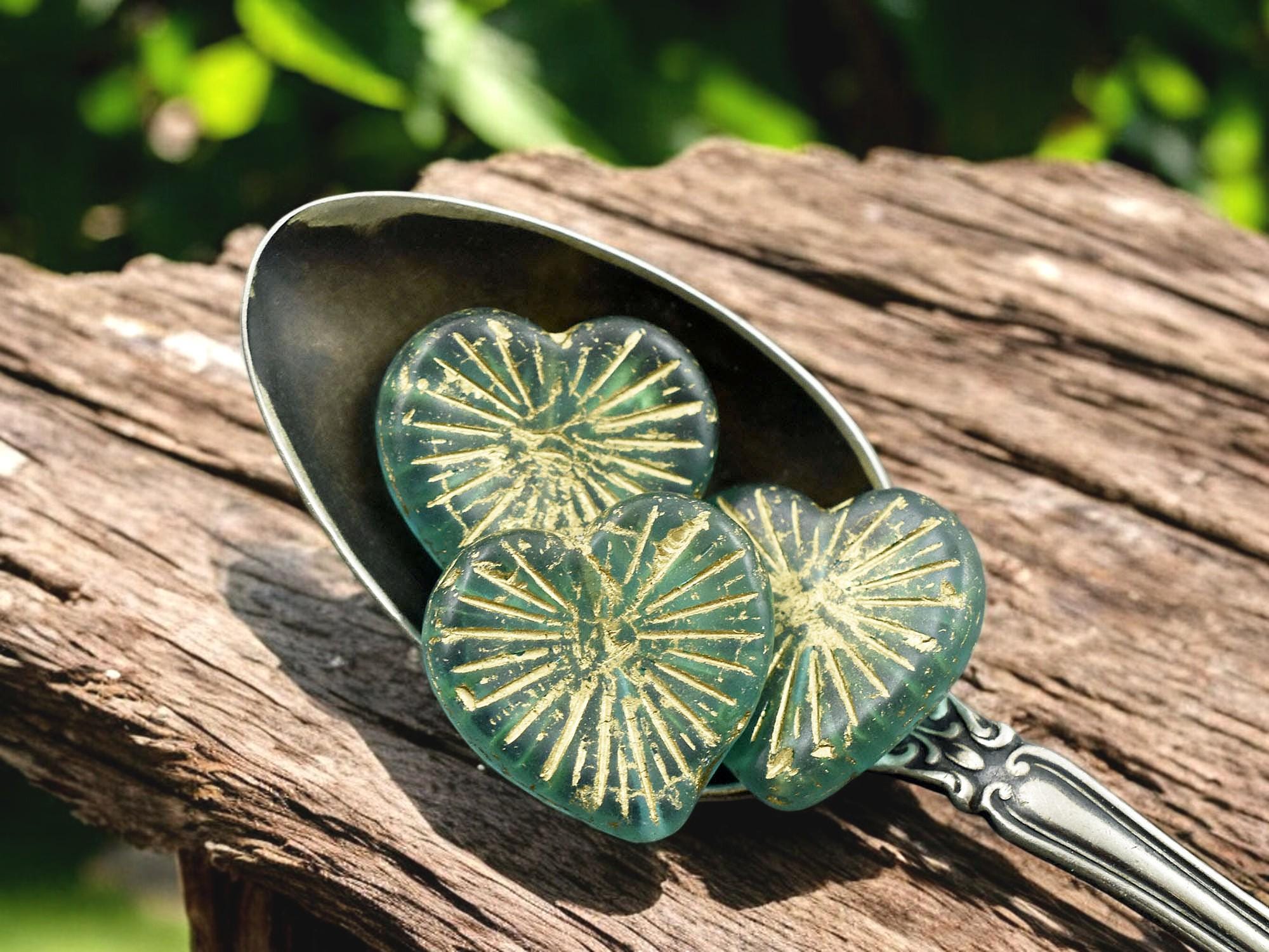 *4* 22mm Gold Washed Matte Teal Heart Beads