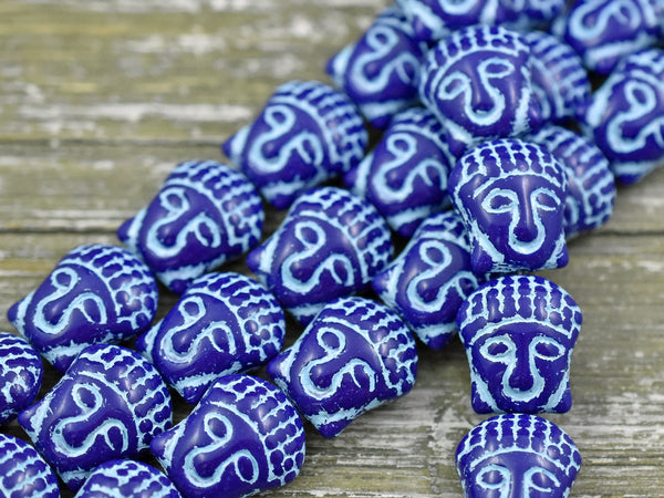 *4* 15x14mm Turquoise Washed Navy Blue Buddha Head Beads