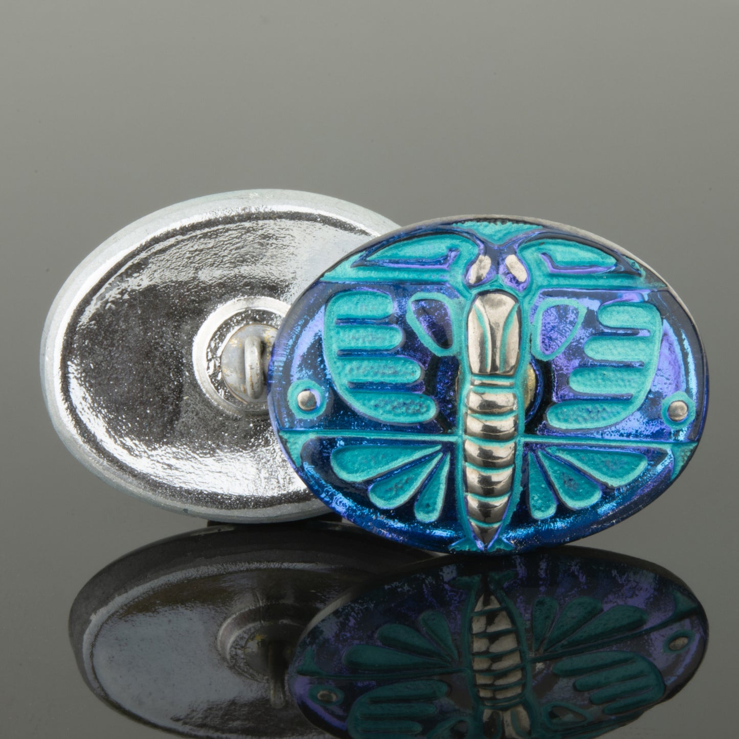29x22mm Oval Art Deco Butterfly Button - Electric Blue Purple Finish with Aqua Wash and Platinum Paint