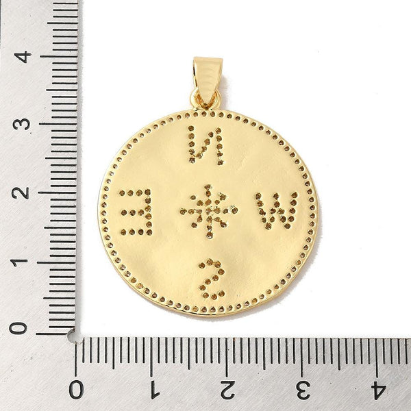 33x30mm 18k Gold Plated Brass Micro Pave Cubic Zirconia Compass Charm Pendant