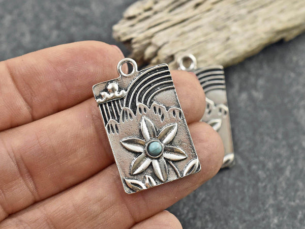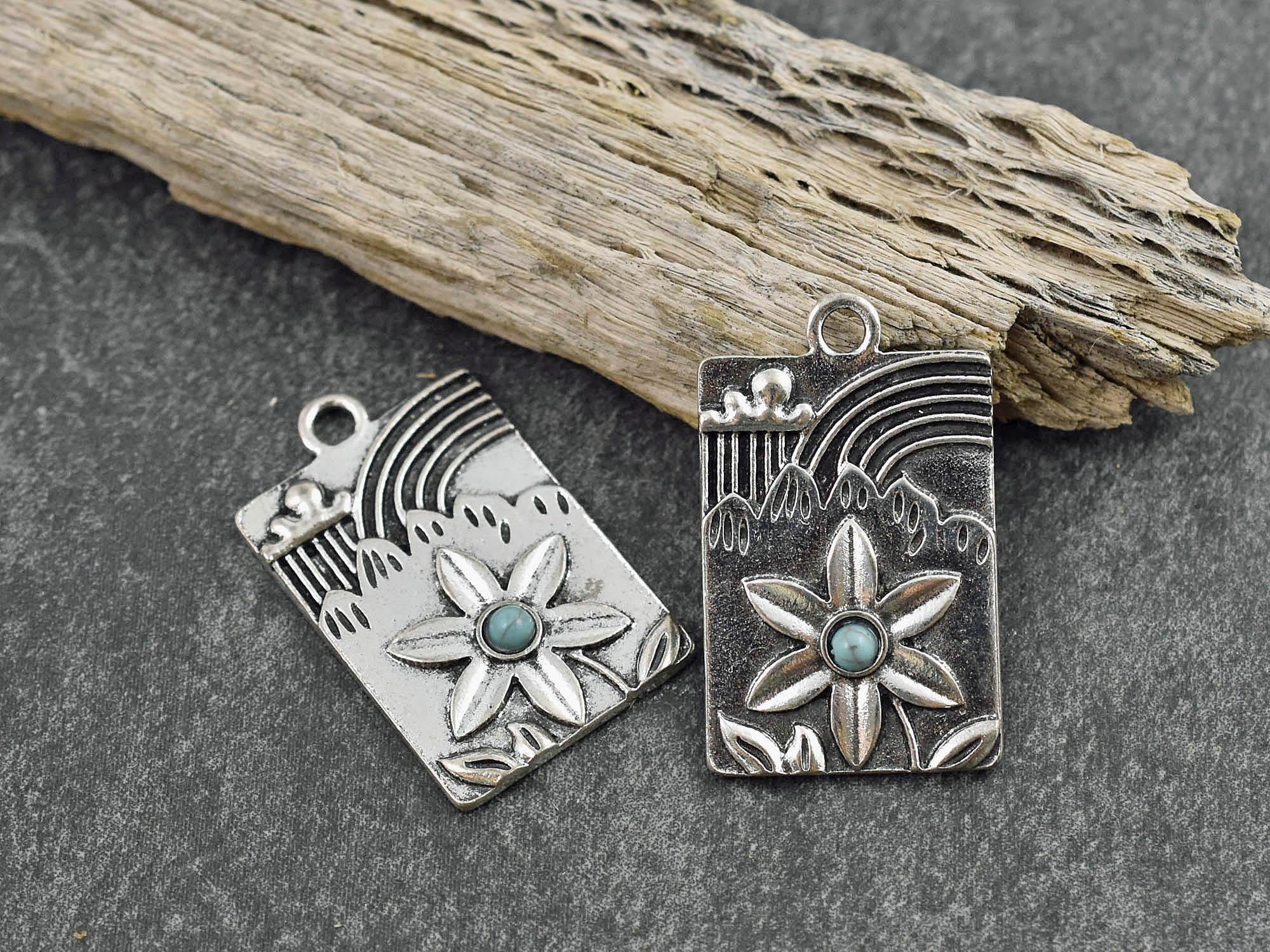 Type/Shape: Rectangle floral charms w/imitation turquoise