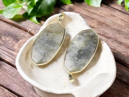 48x22mm Gold Plated Brass Oval Labradorite Pendant