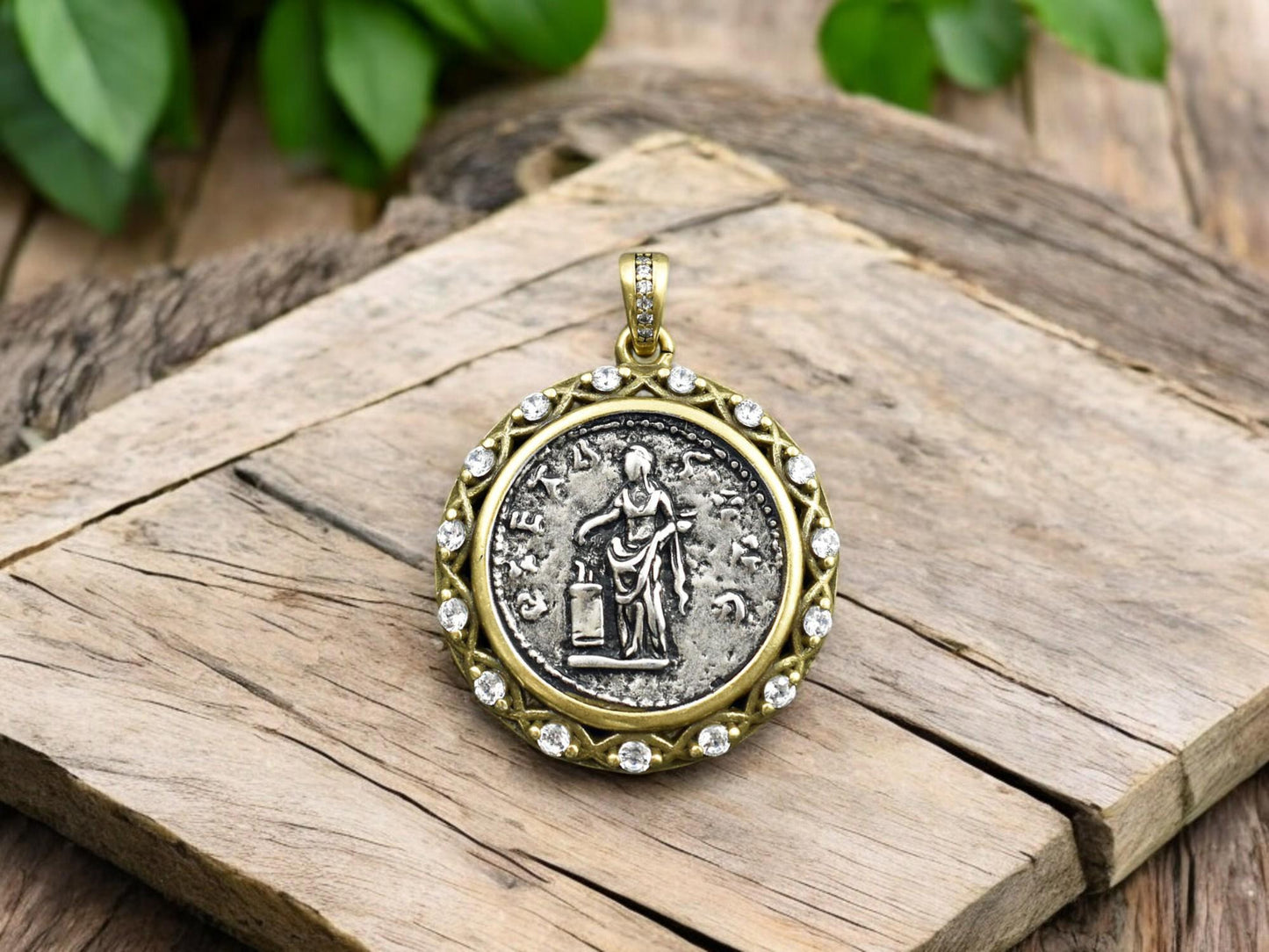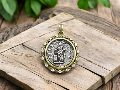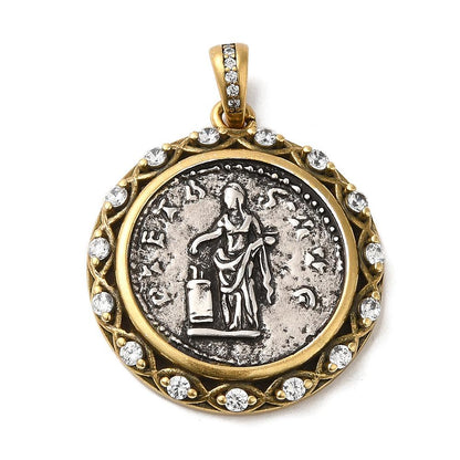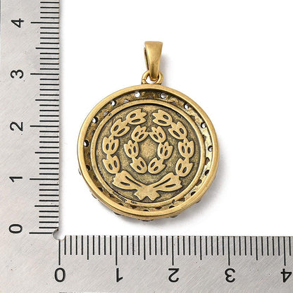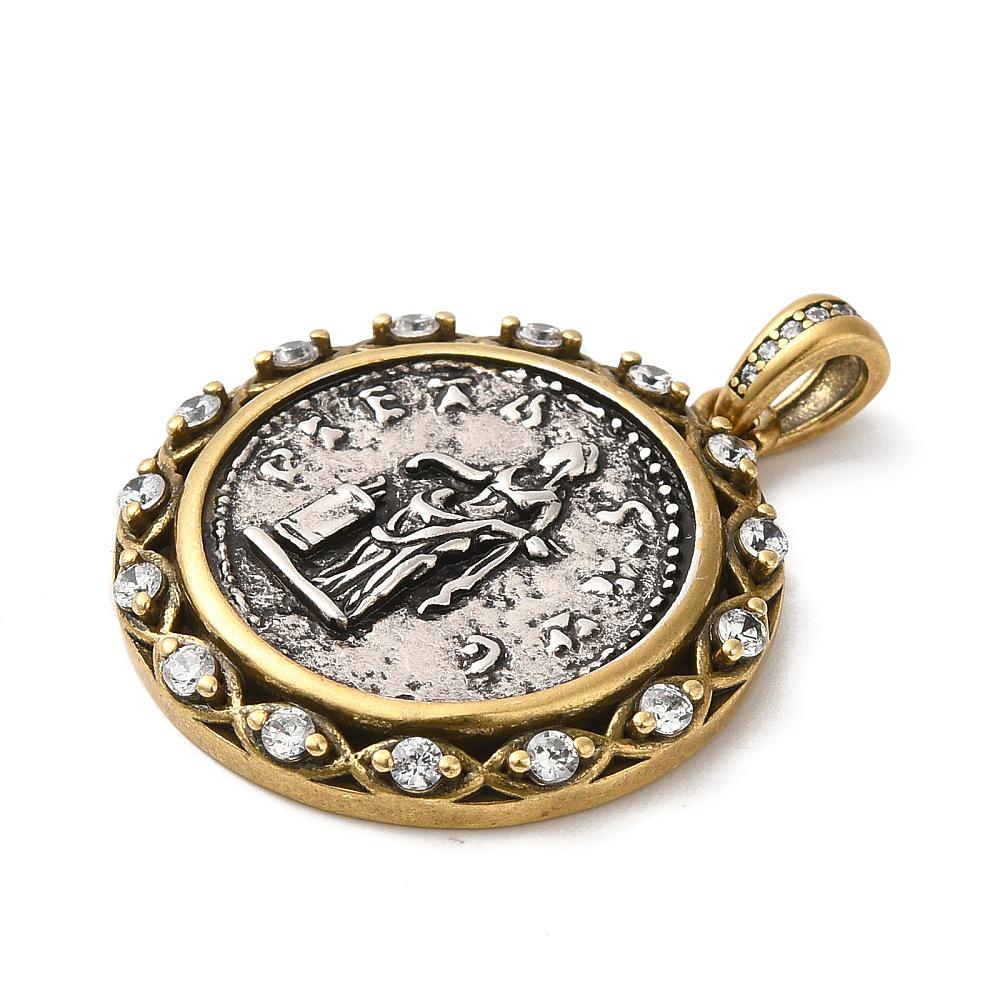 29x26mm 18k Gold Plated Brass Micro Pave Cubic Zirconia Greek Coin Pendant