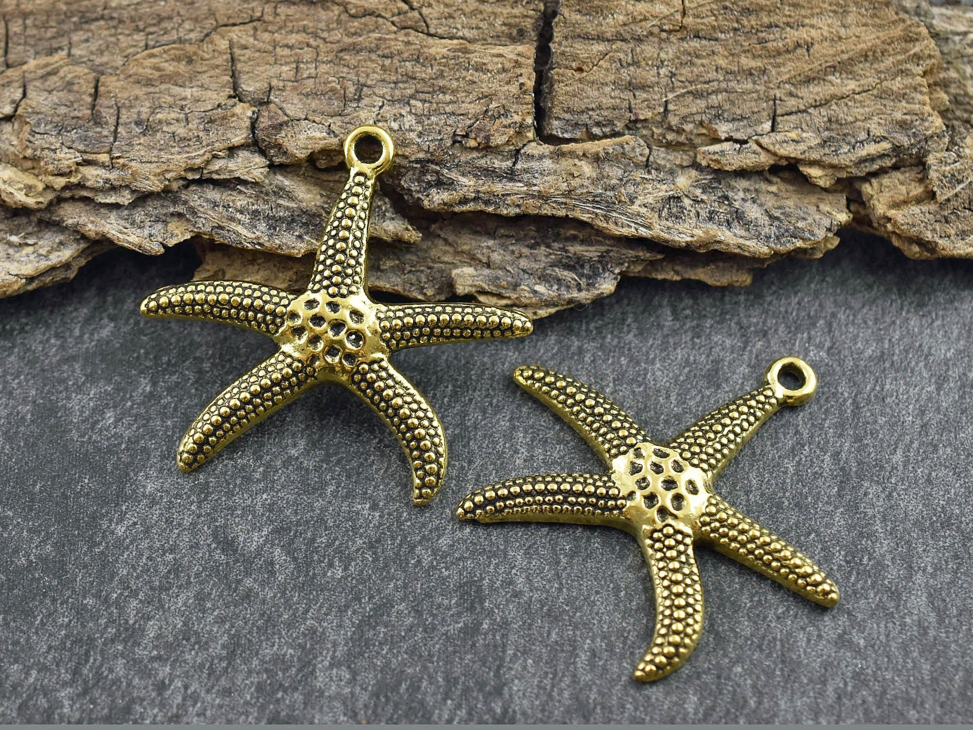 *10* 28x30mm Antique Gold Star Fish Pendant Charms