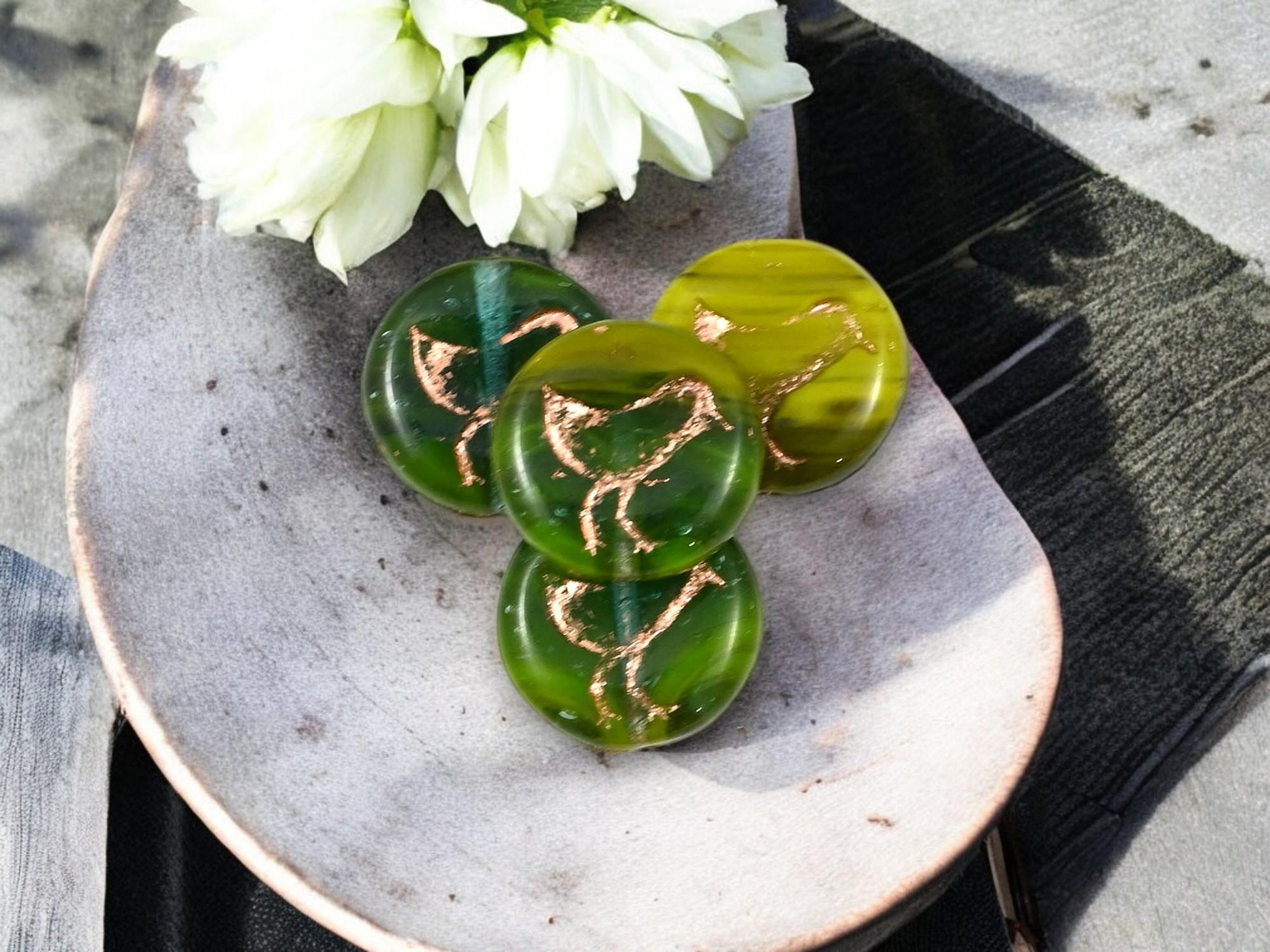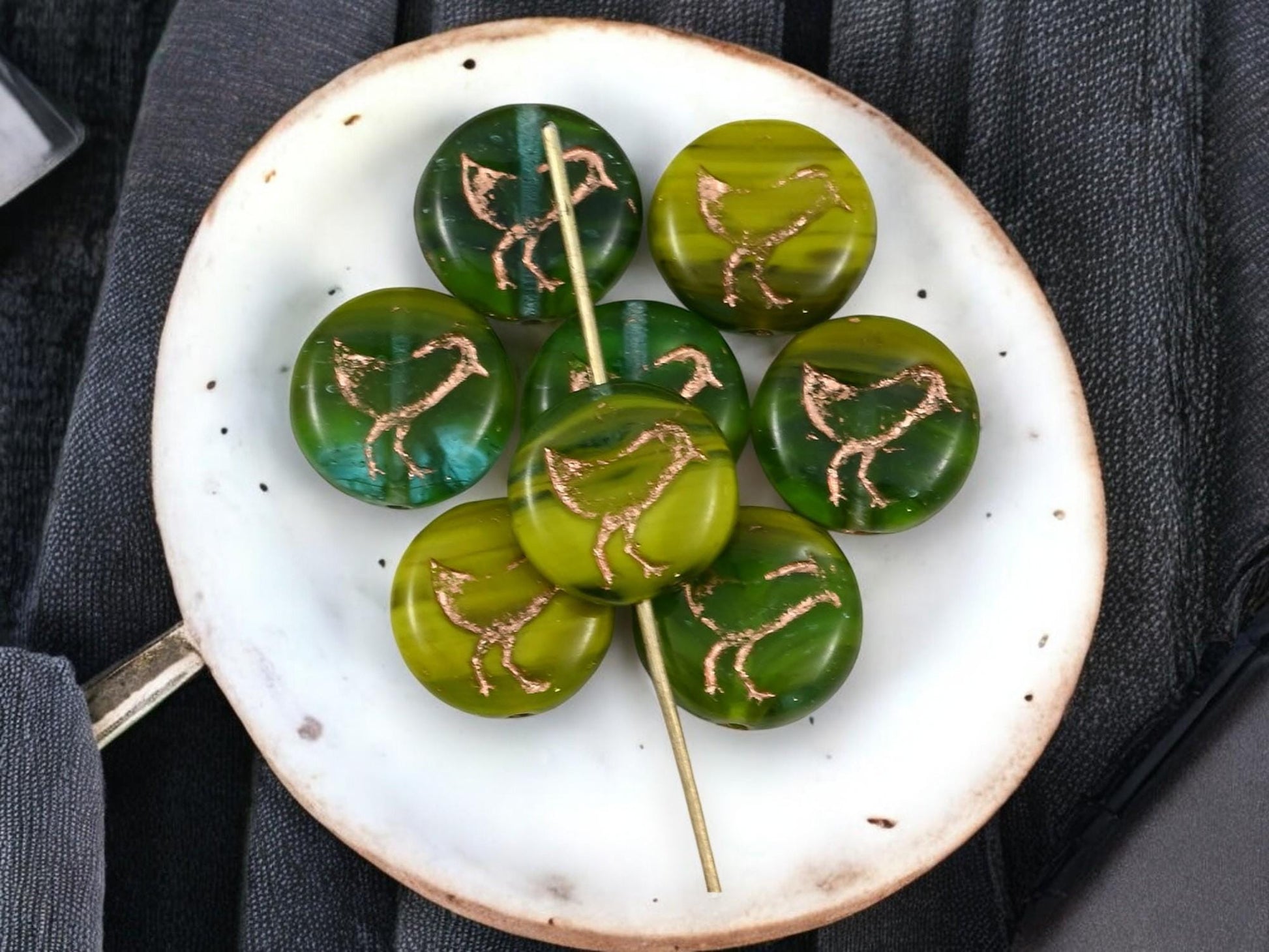 ♥ Type/Shape: Czech pressed glass coin beads with bird design (design on both sides of bead)