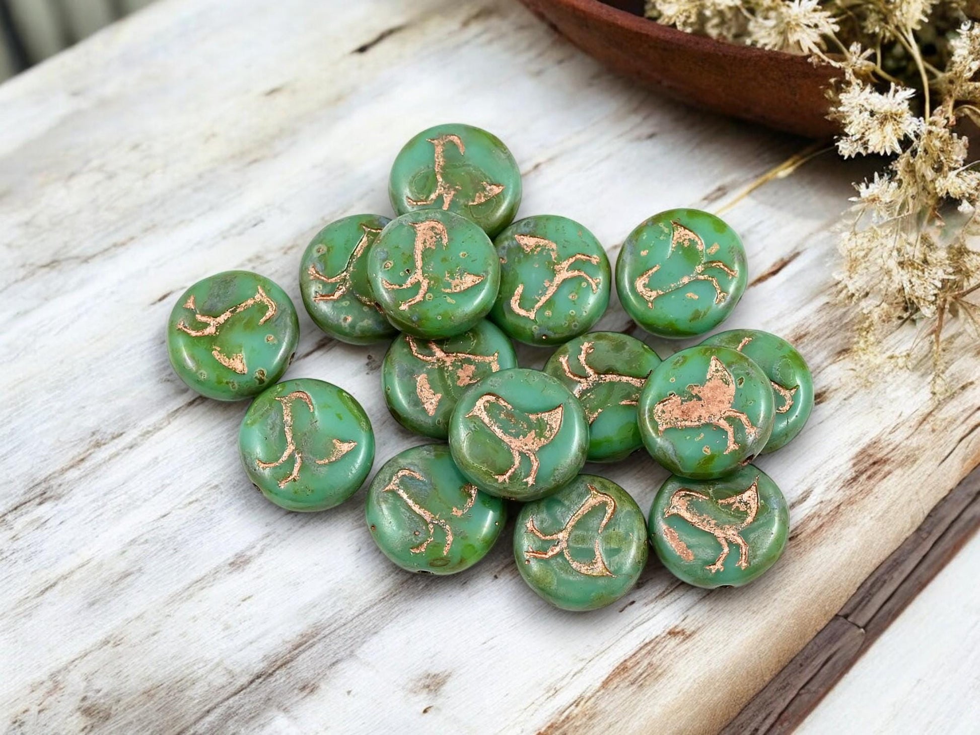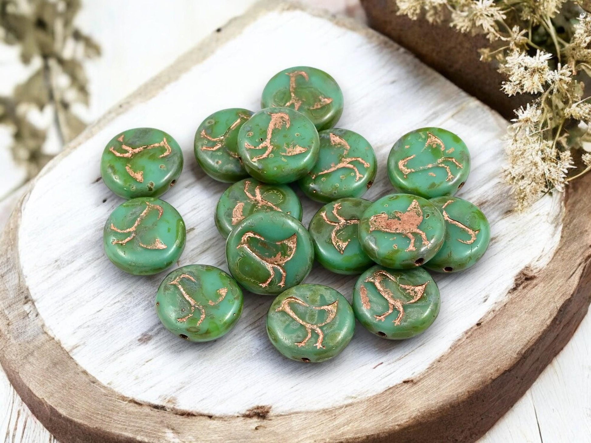 ♥ Type/Shape: Czech pressed glass coin beads with bird design (design on both sides of bead)