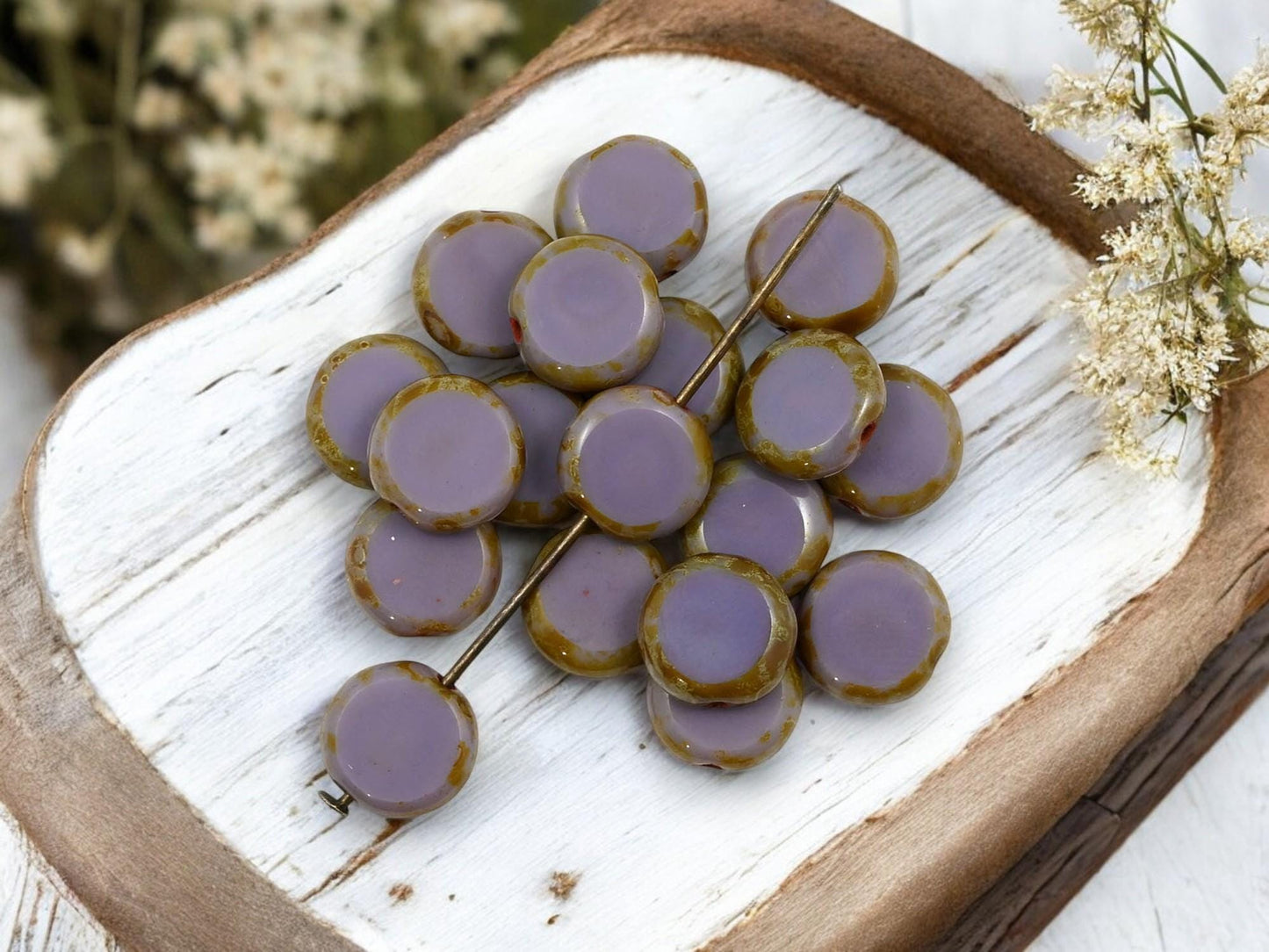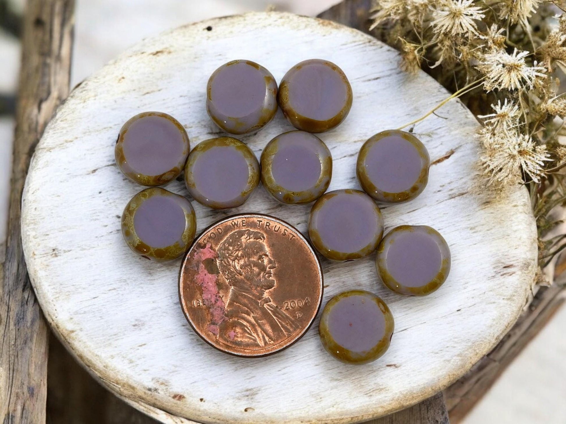 *25* 10mm Opaque Purple Picasso Table Cut Coin Beads