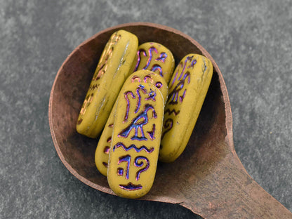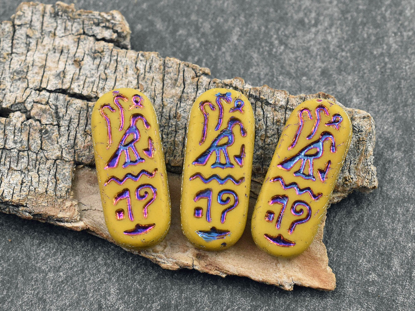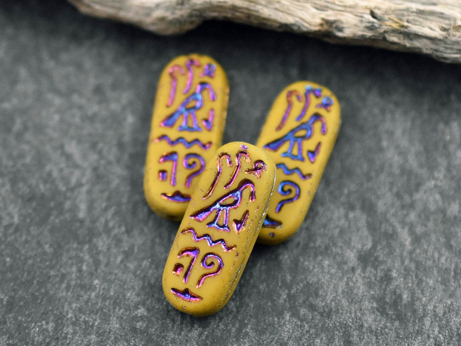 *6* 25x10mm Matte Mustard Rainbow Metallic Egyptian Cartouche Oval Beads