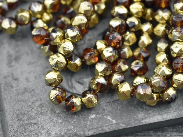 Gold Washed Root Beer Antique Cut Round Beads -- Choose Your Size