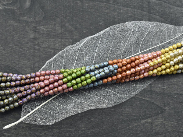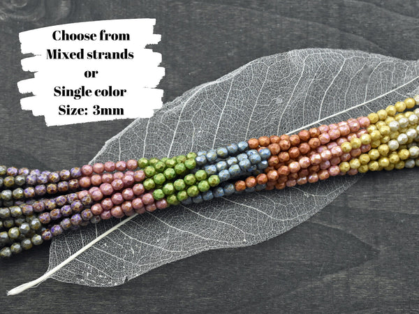 3mm Opaque Luster Picasso Fire Polished Round Beads -- Choose Your Color