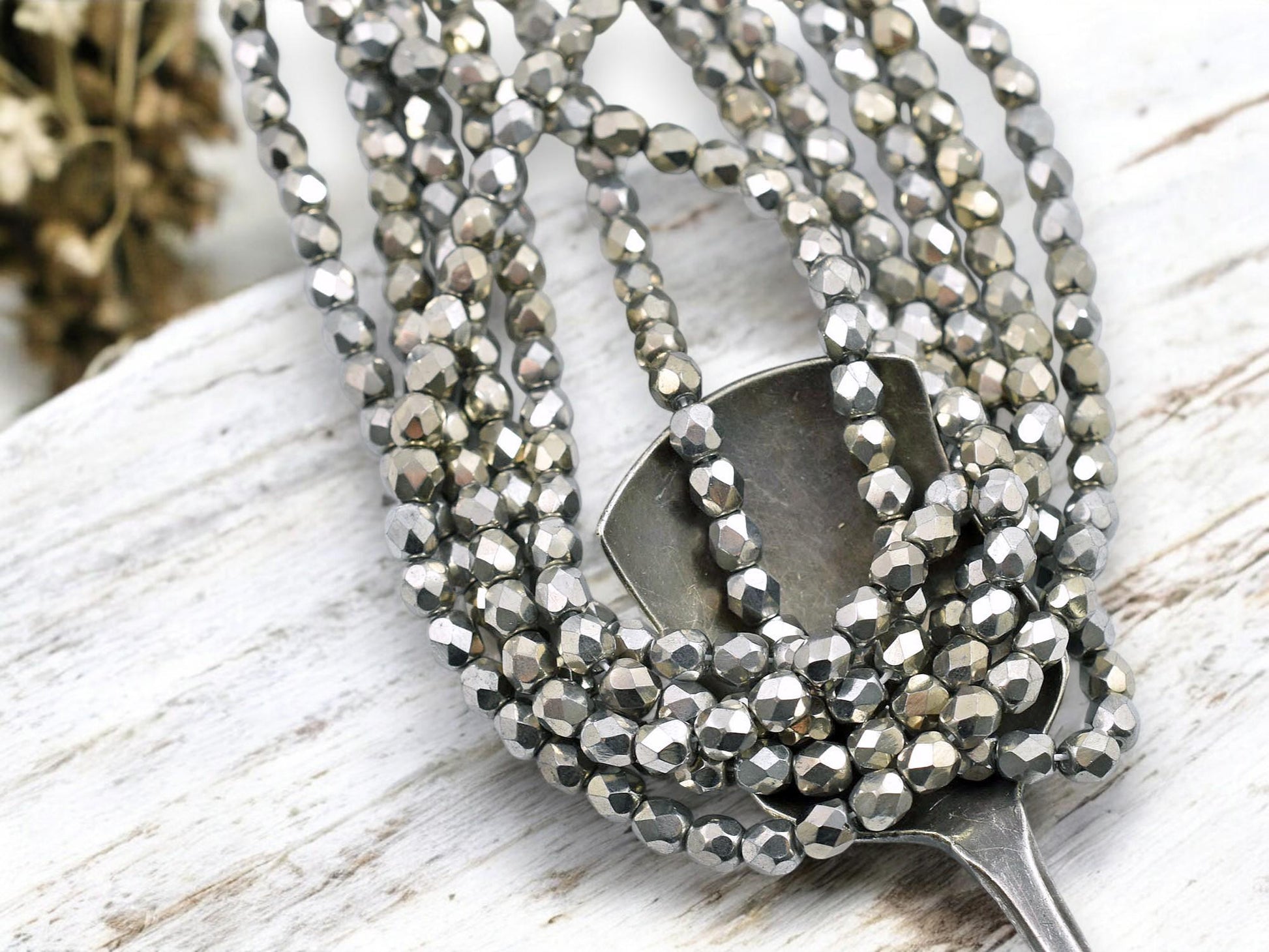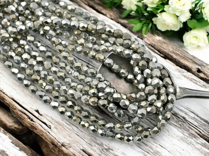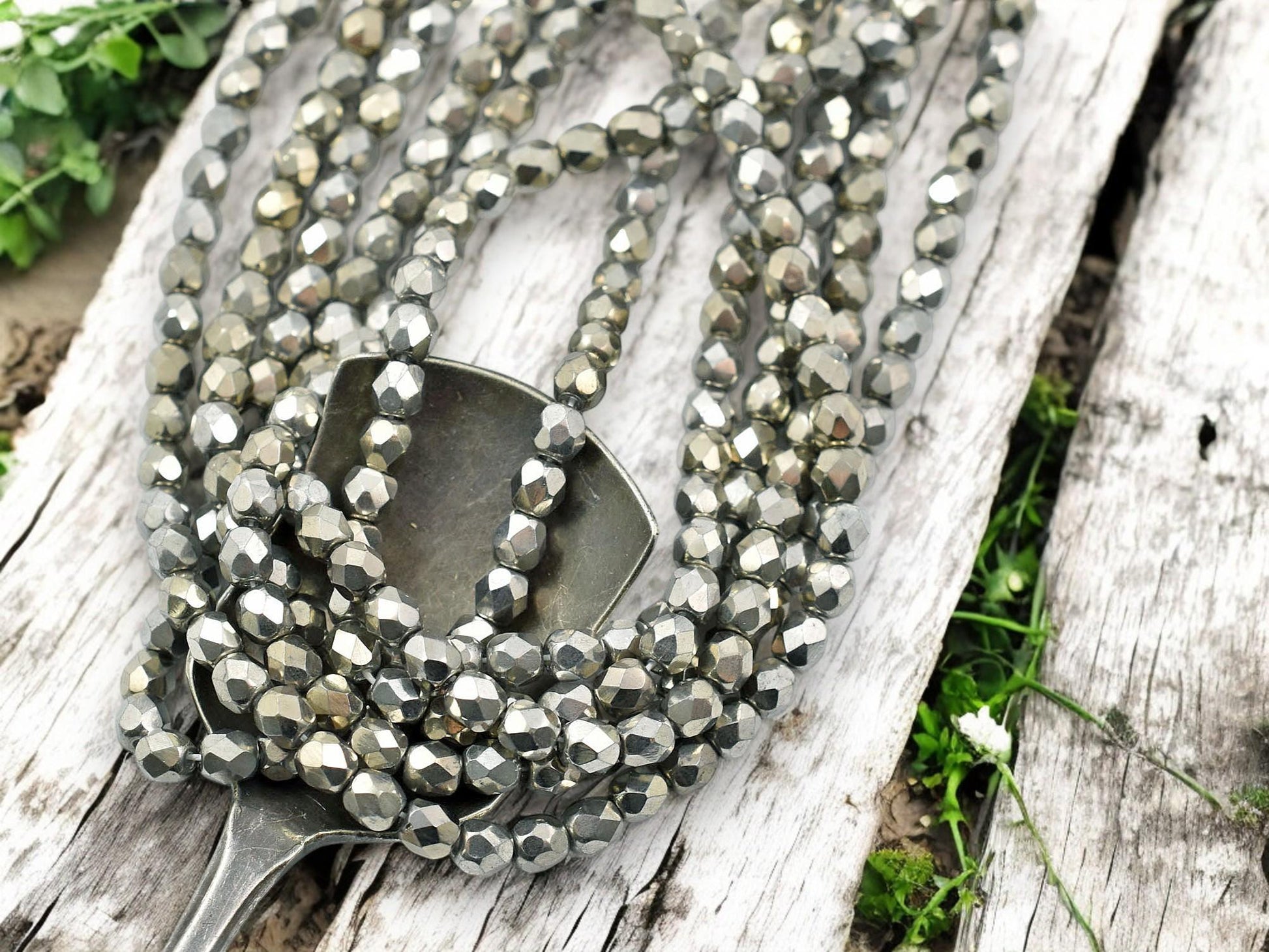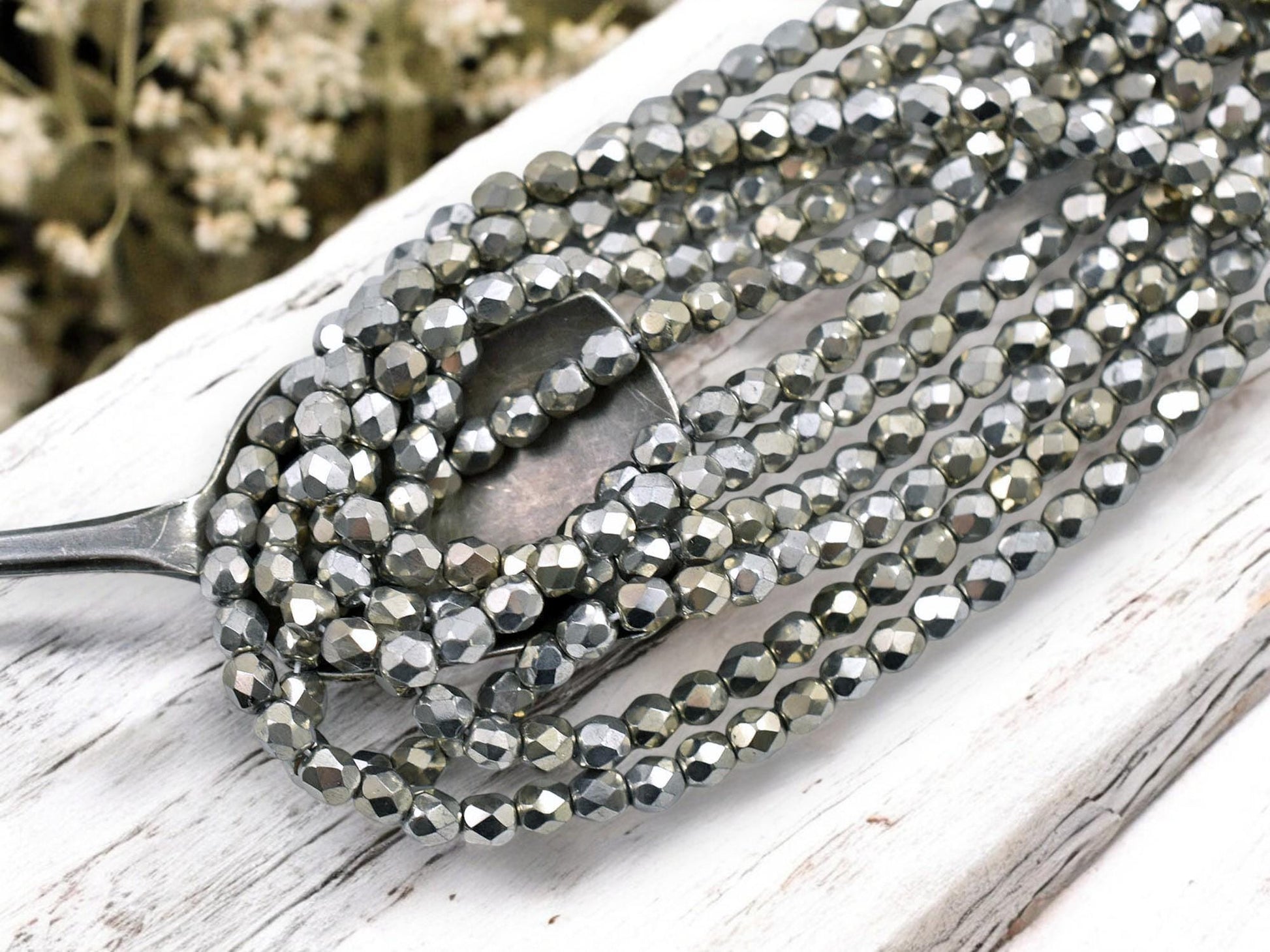 *50* 4mm Antique Silver Fire Polished Round Beads