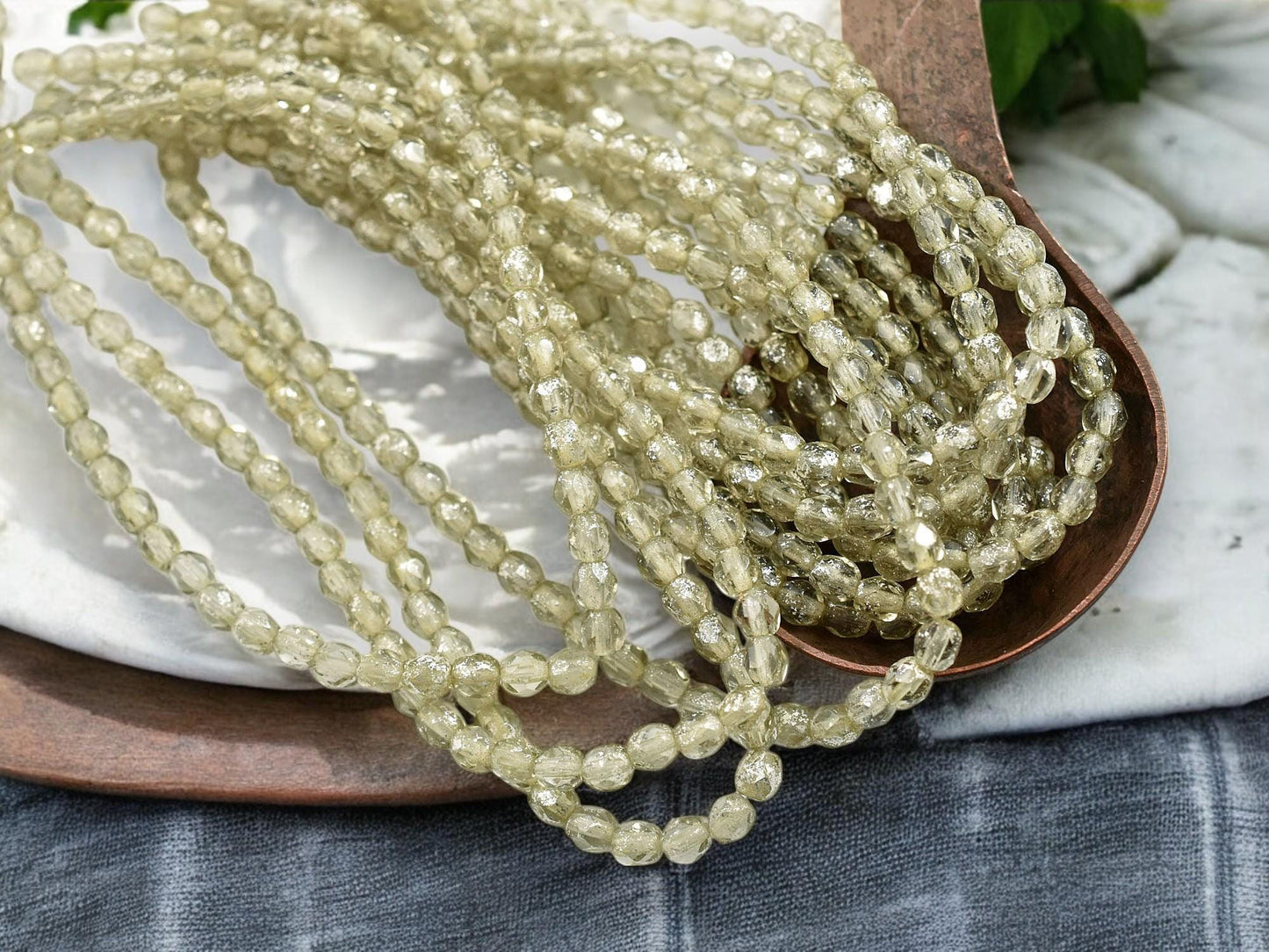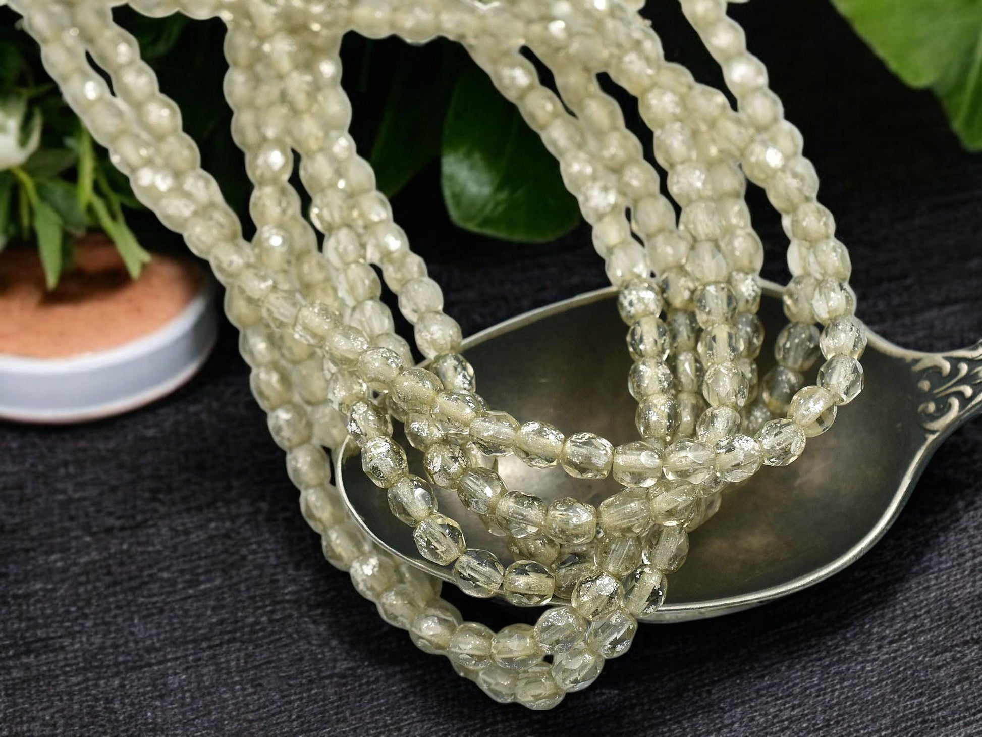 *50* 4mm Silver Mercury Washed Smokey Crystal Fire Polished Round Beads