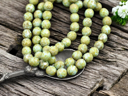 *25* 8mm Blue Turquoise Picasso Fire Polished Round Beads