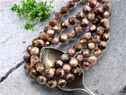 *25* 8mm Gold Lustered Mauve Root Beer Fire Polished Round Beads