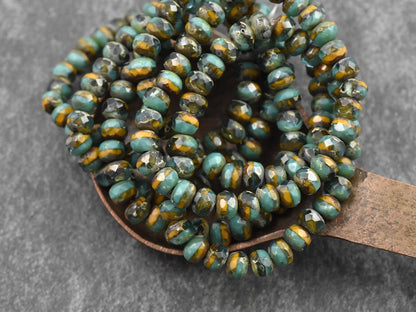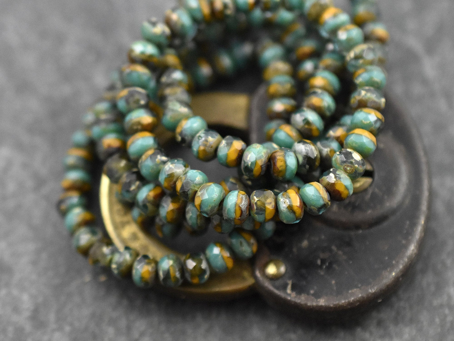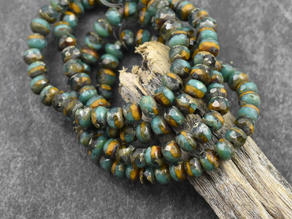 *30* 3x5mm Blended Turquoise Aqua & Orange Picasso Fire Polished Rondelle Beads