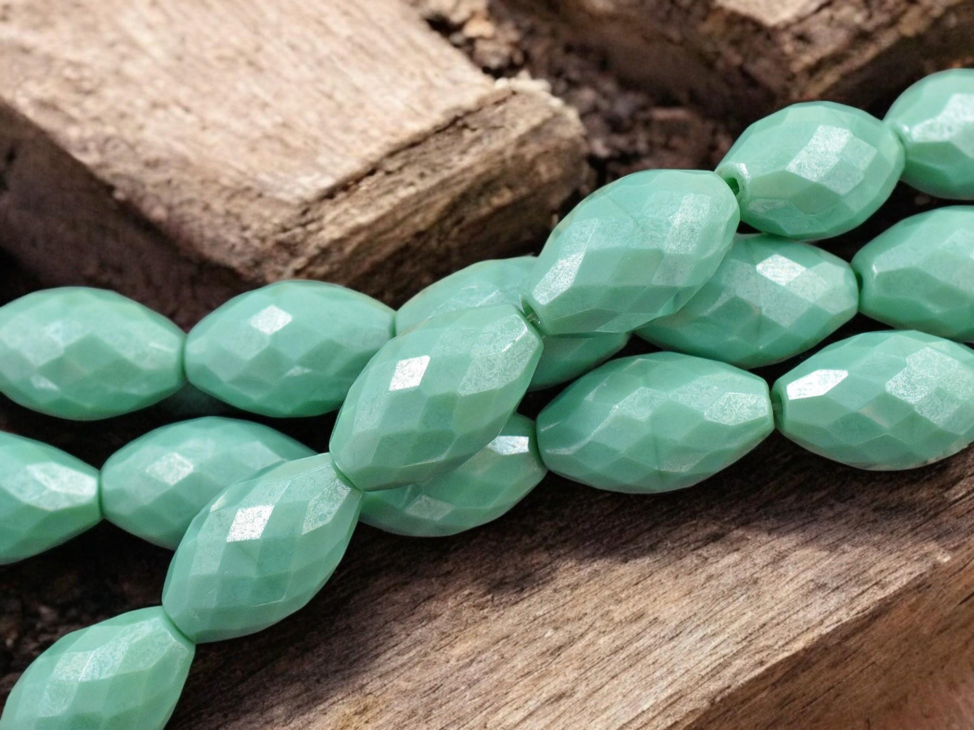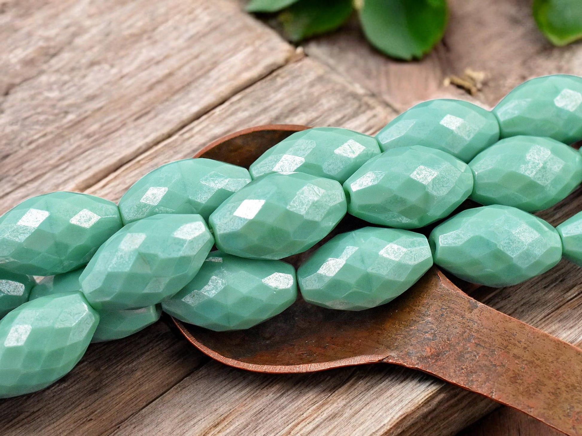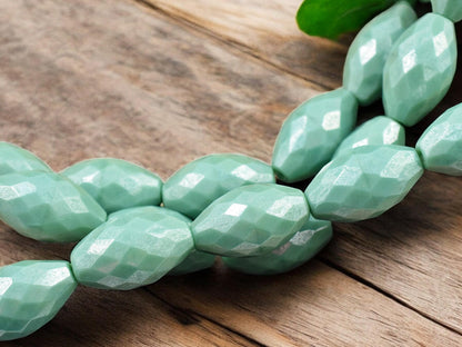 *6* 12x20mm Opaque Turquoise Luster Faceted Oval Fire Polished Beads
