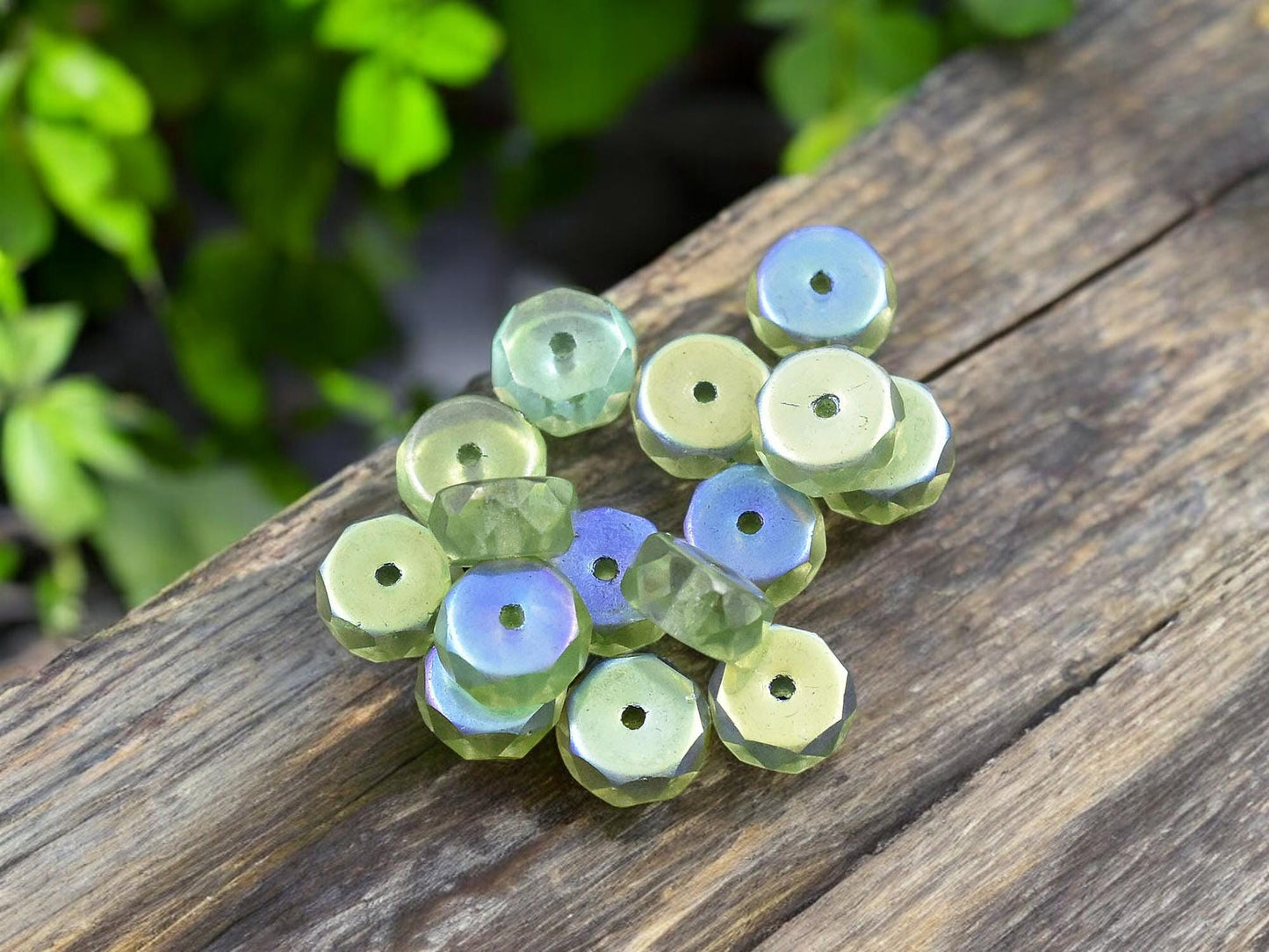 *15* 4x6mm Honeydew Luster AB Fire Polished Rondelle Heishi Beads