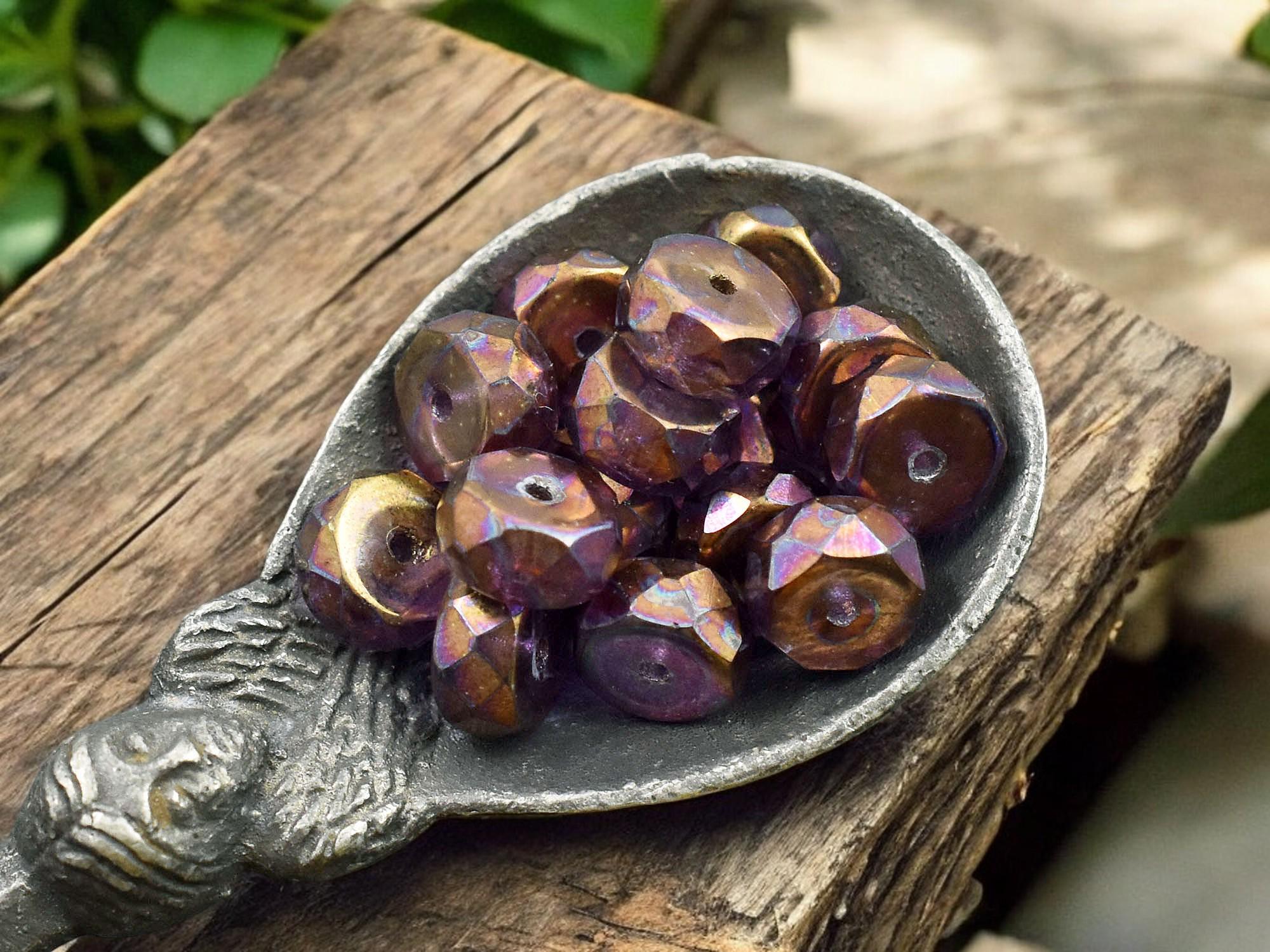 *15* 4x6mm Copper Washed Purple Metallic Thistle Fire Polished Rondelle Heishi Beads